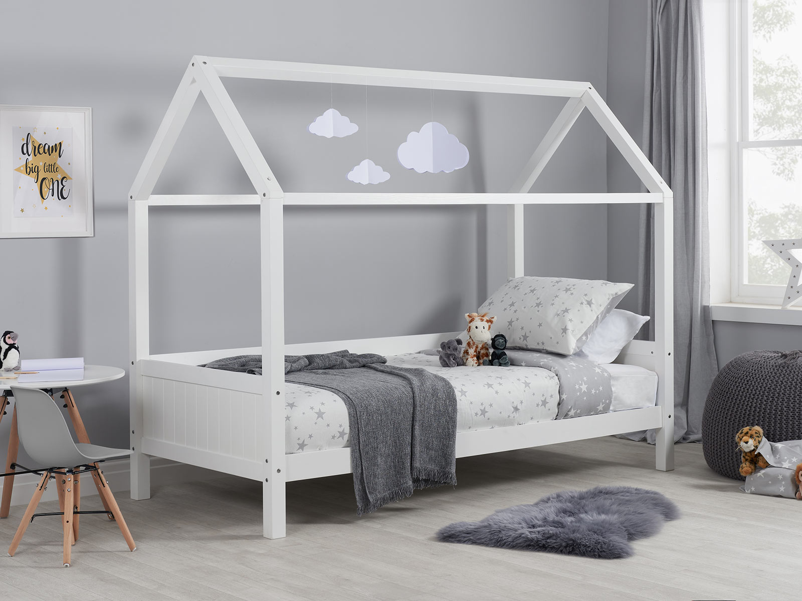 ? The wooden Home bed frame in the shape of a house is the perfect bed for your little one?s bedroom.