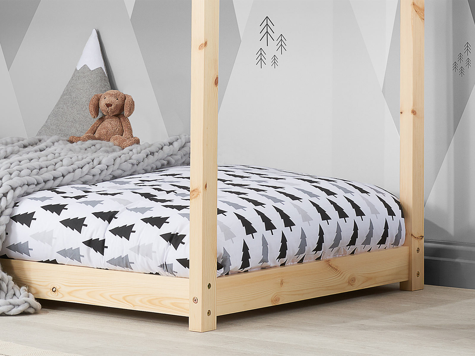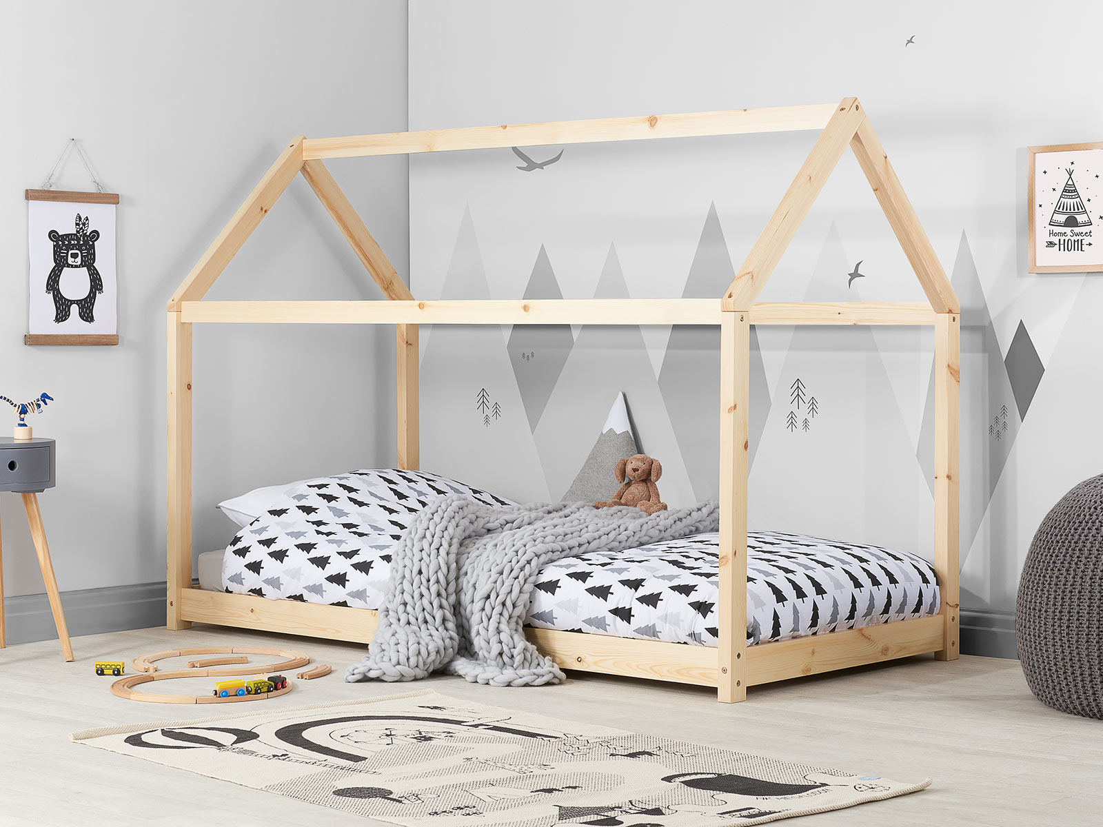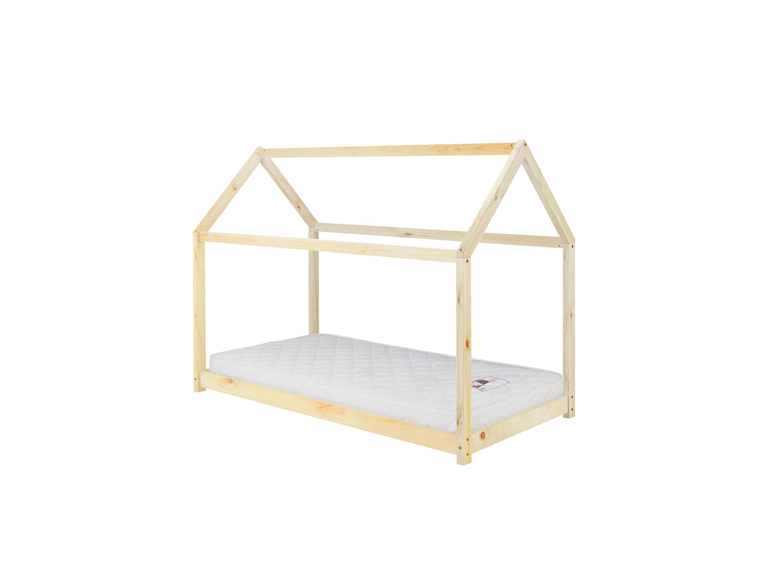 ? The wooden bed frame in the shape of a house is the perfect bed for your little one?s bedroom.