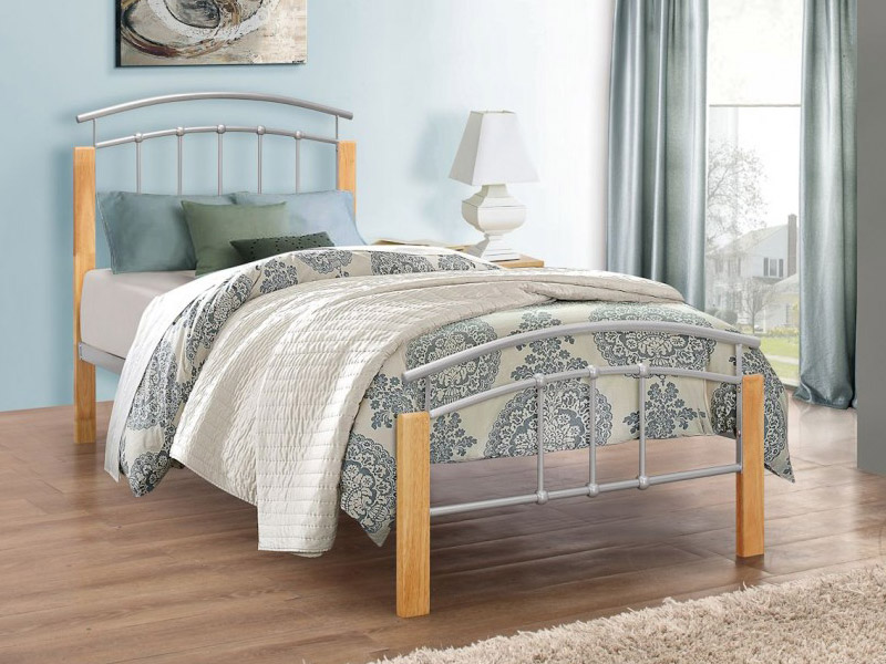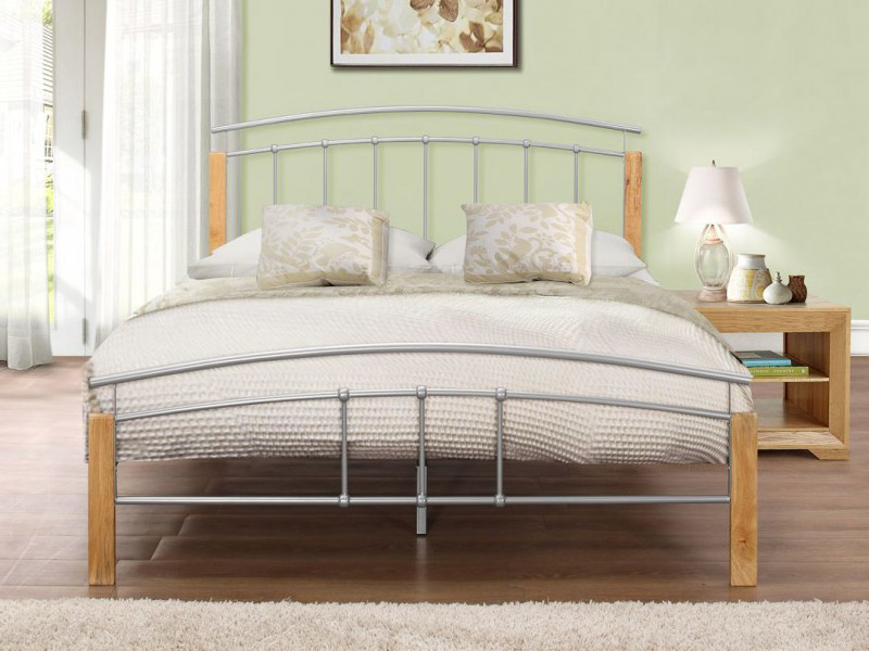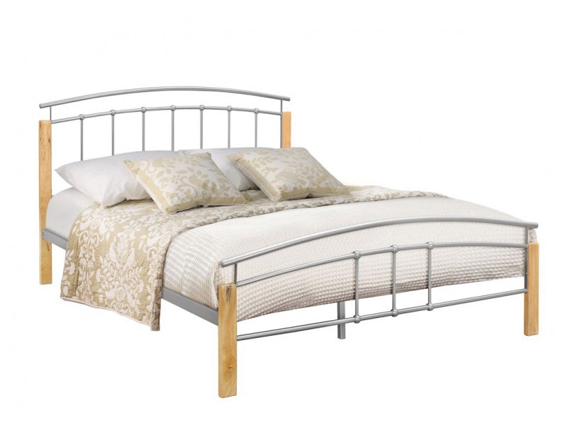 Modern style bedstead silver finsh with beech posts.