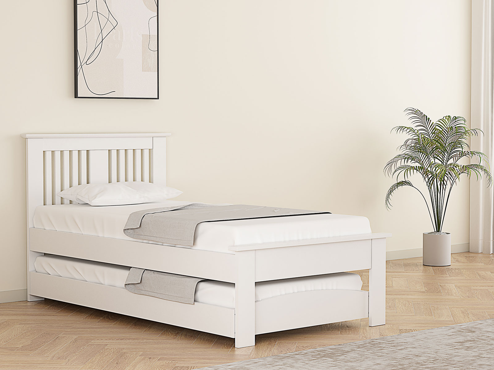 A classic white guest bed with a simple yet elegant design. Practical and space-saving, it’s perfect for accommodating overnight guests with ease.