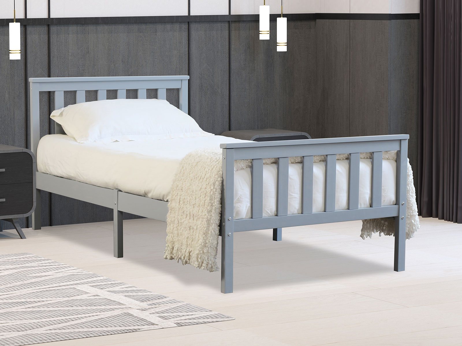 The Marnel 3ft Bed in Grey is a versatile single bed that seamlessly fits into both traditional and contemporary bedrooms. Crafted with quality materials, it ensures durability and comfort. The neutral grey finish allows for easy integration with various colour schemes, making it a practical addition to any home.