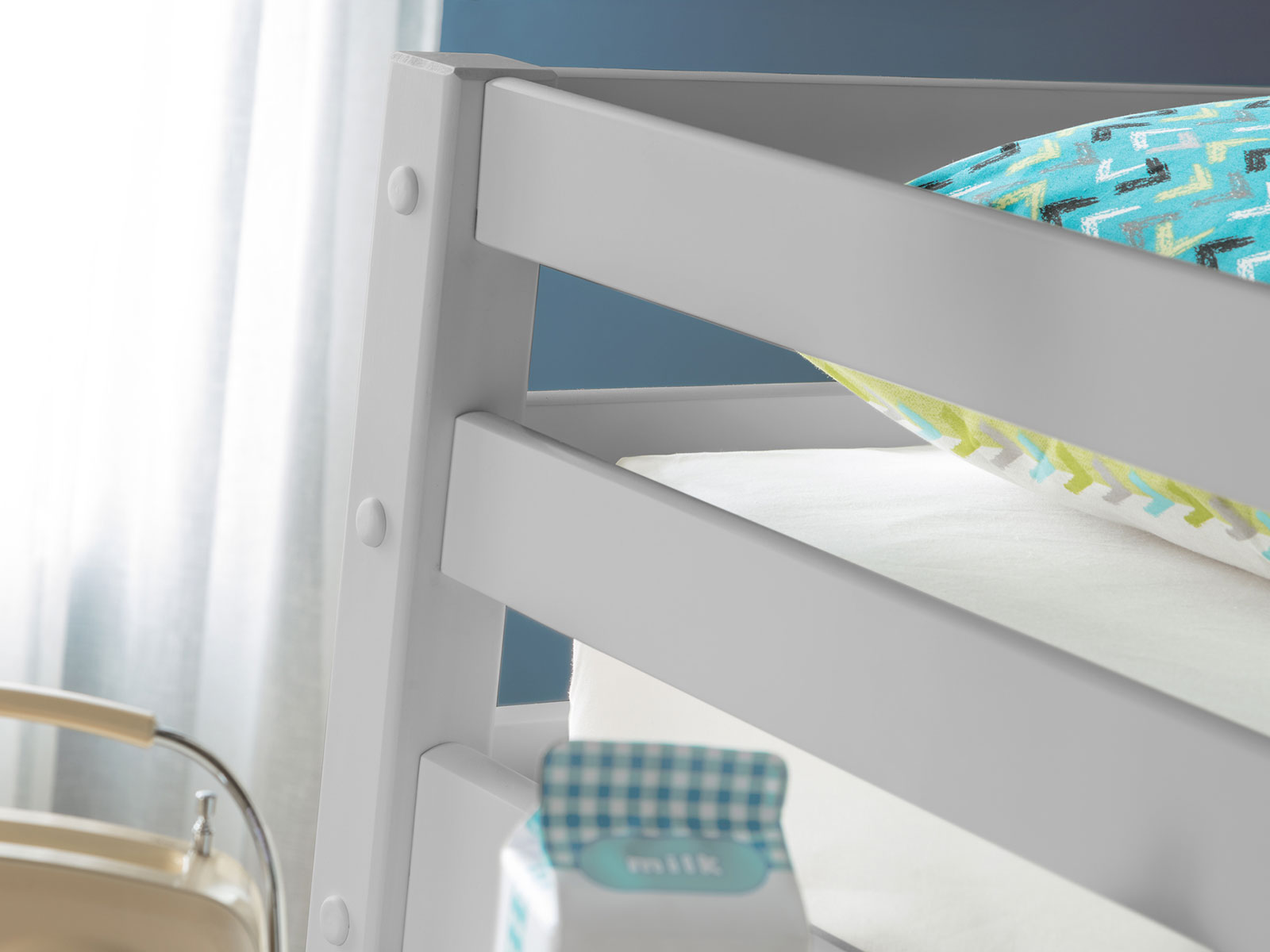 To minimise the danger of falling from the sleepstation, we recommend that the top of the mattress should always be at least 16cm below the top of the lowest part of the guardrail. Maximum mattress height for this sleepstation is 15cm