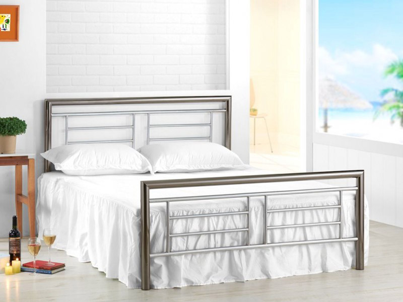 The Montana is a modern style metal bed frame with chrome and nickel framework and a sprung slatted base – available in double and king size