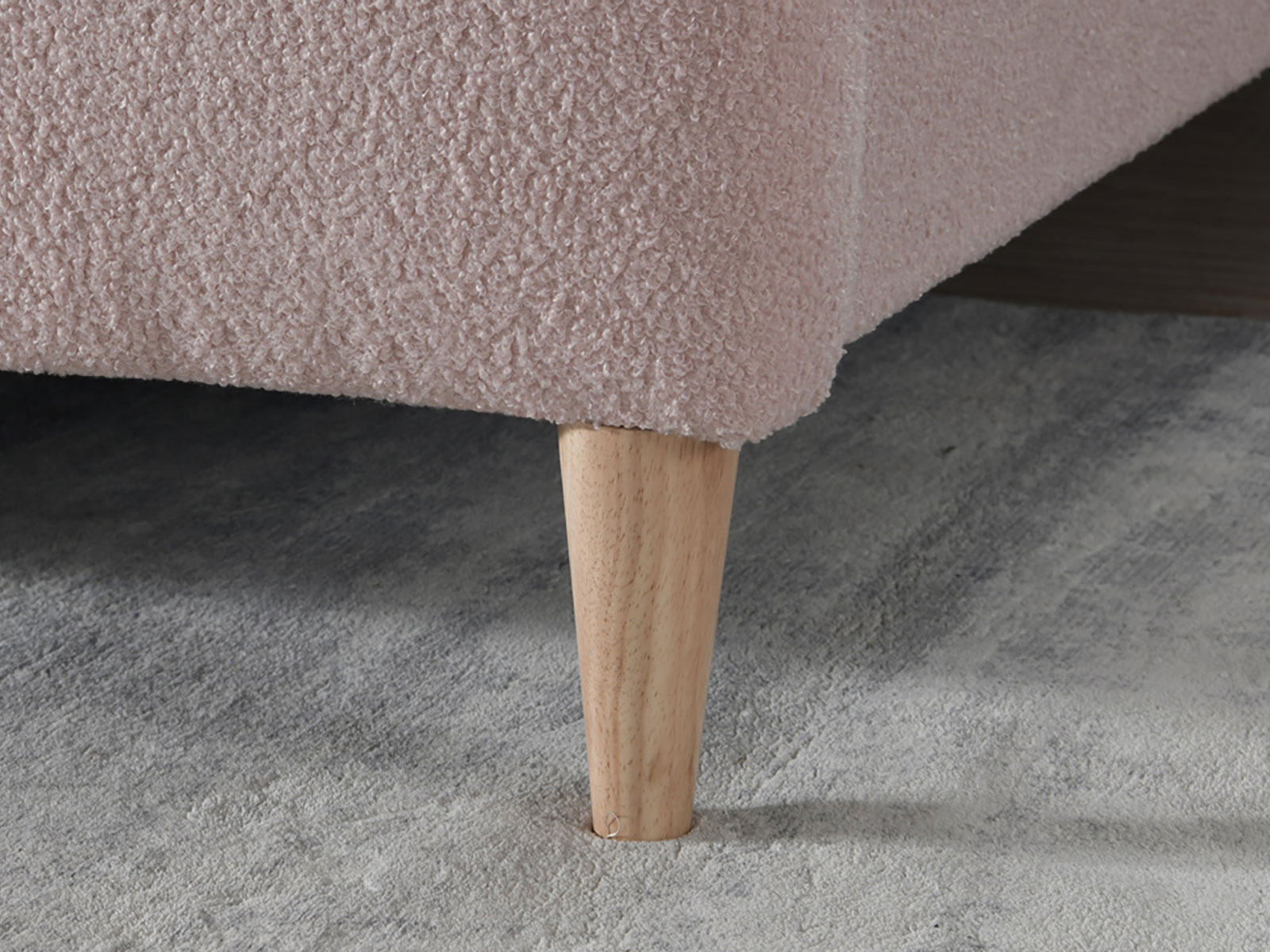 Gentle curves to the headboard and foot end, along with stunning teddy bear fabric compliments the light wood feet.