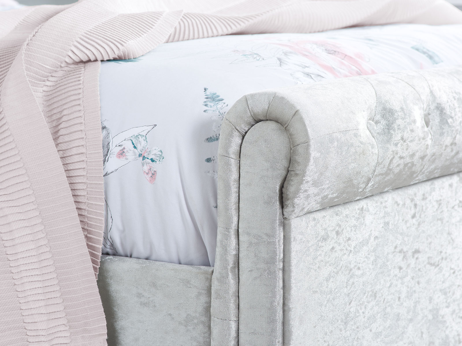 Modern and stylish, the Sienna fabric bed offers comfort with its luxury fabric finish and rolled headboard and footboard design, adding a touch of class to the bedroom.