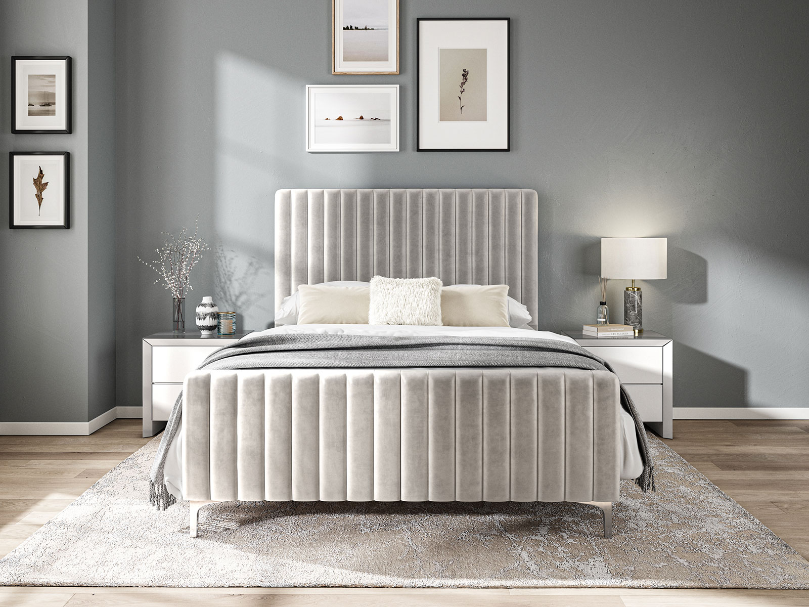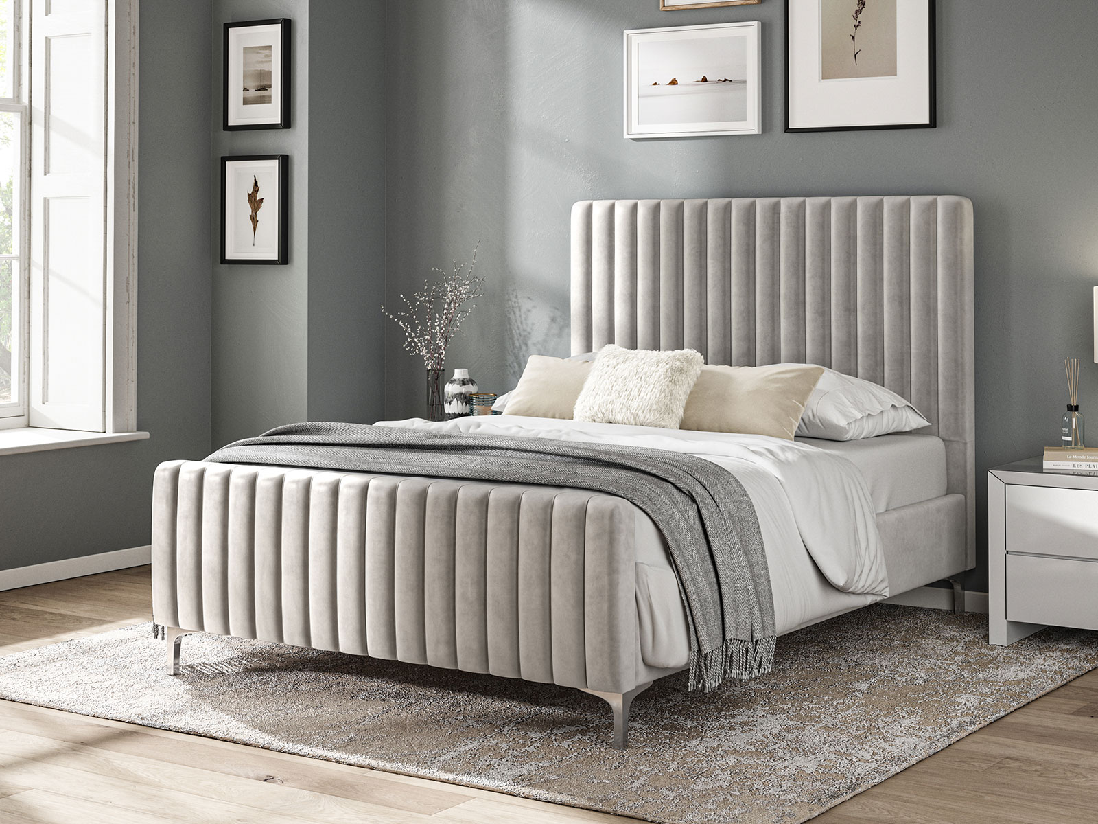 ?˜Luxurious Velvet in a batton panel pattern headboard