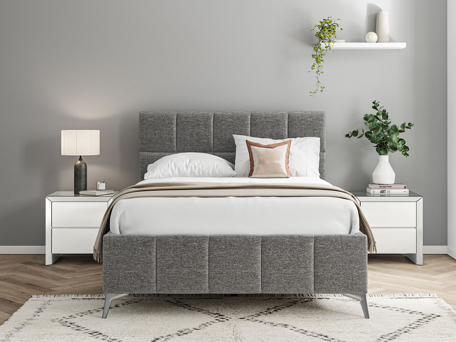 ?˜Soft Linen in a square panel pattern headboard