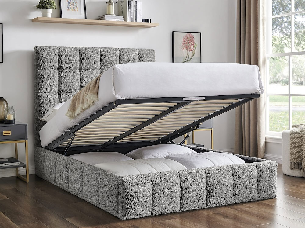 This Chic Storage Ottoman bed is upholstered in a stunning Boucle fabric. A simple, Instagrammable design of the headboard brought into the modern era with the fabric of the moment and a design that extends around the base. The storage version adds practicality, providing a discreet solution to declutter your space while maintaining timeless style