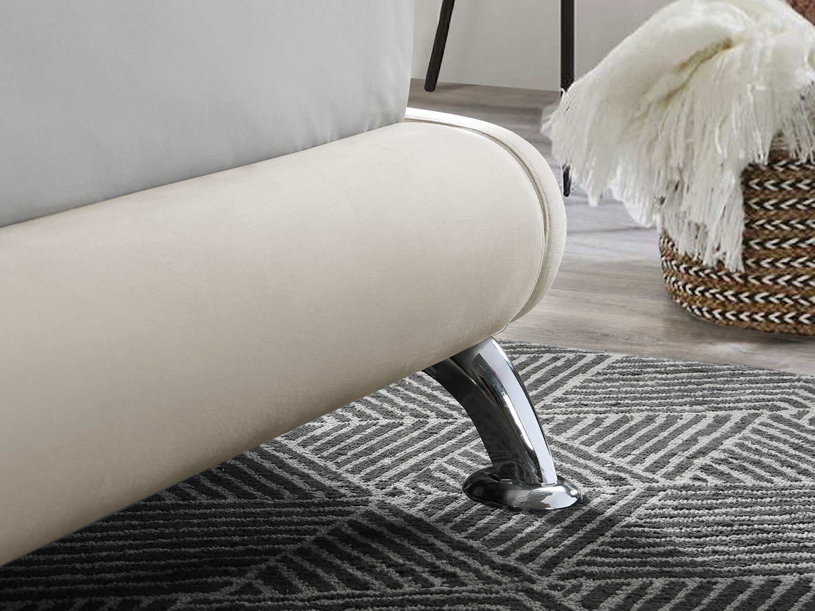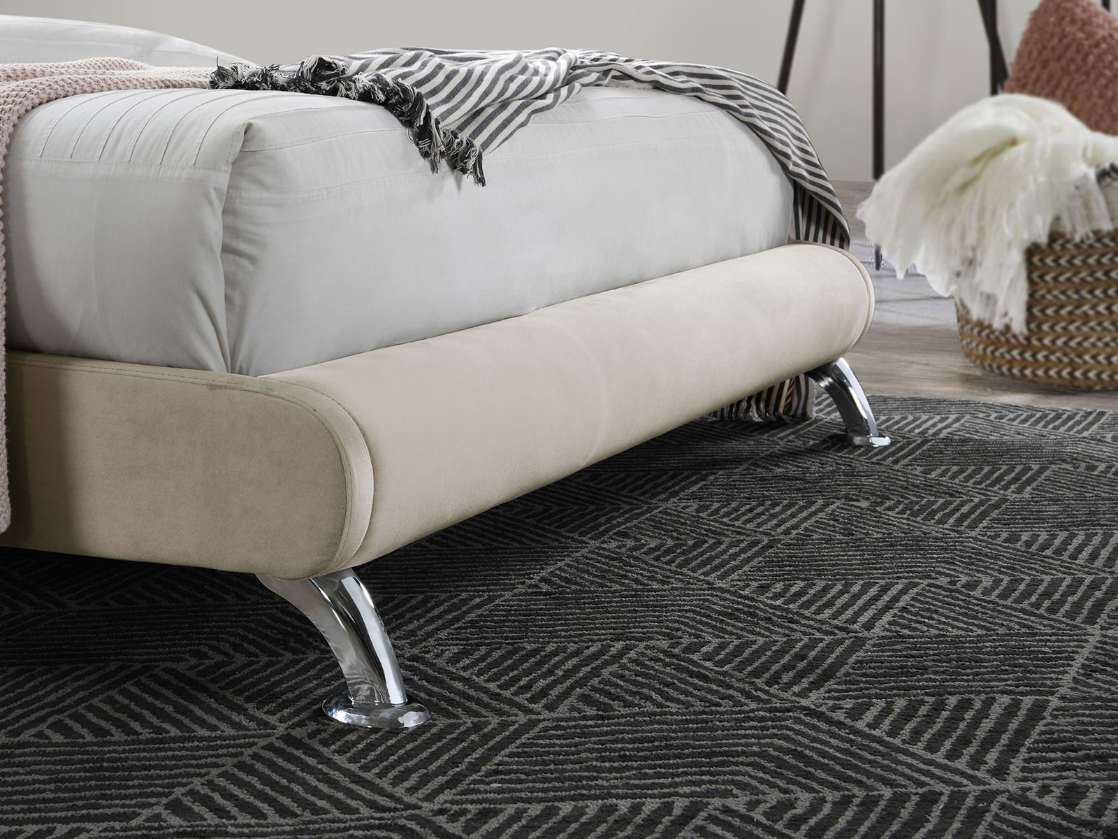 A modern bed that adds a touch of glamour to any contemporary bedroom. The Hemlock features a sophisticated curved shape and a slightly slanted headboard with stunning chrome-plated feet. This frame has a sprung slatted base sunken into the bed that offers a natural bounce, adjusting to where pressure is most exerted to provide greater comfort. The maximum weight load for this bed is 400 kg. Please note: Birlea beds are only suitable for a UK standard size mattress.