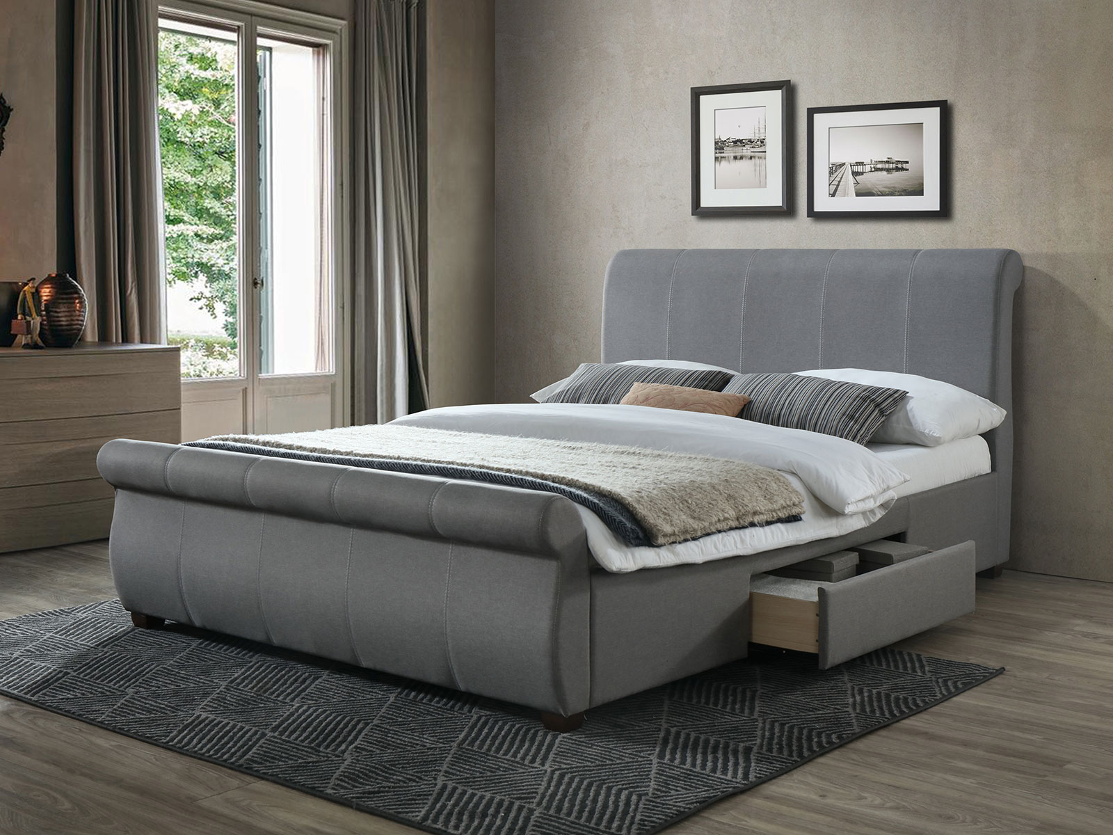 This sophisticated sleigh bed is a timeless classic. With an attractive rolled headboard and footboard, the Lancaster bed is the perfect statement piece for any bedroom.
