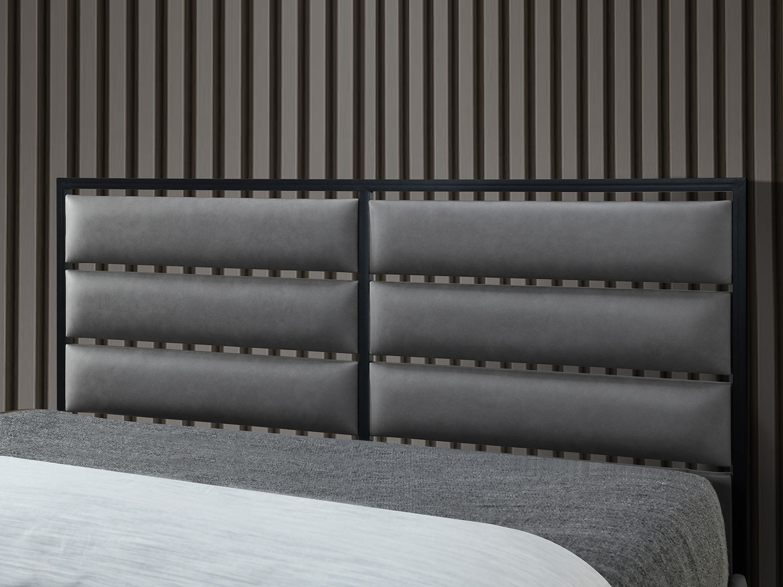 The Marford 5ft Bed in PU / Metal Grey is a king-size bed that exudes contemporary charm with its striking PU upholstery. Featuring a sturdy frame and elegant grey finish, this bed brings a touch of refinement to your sleeping space.