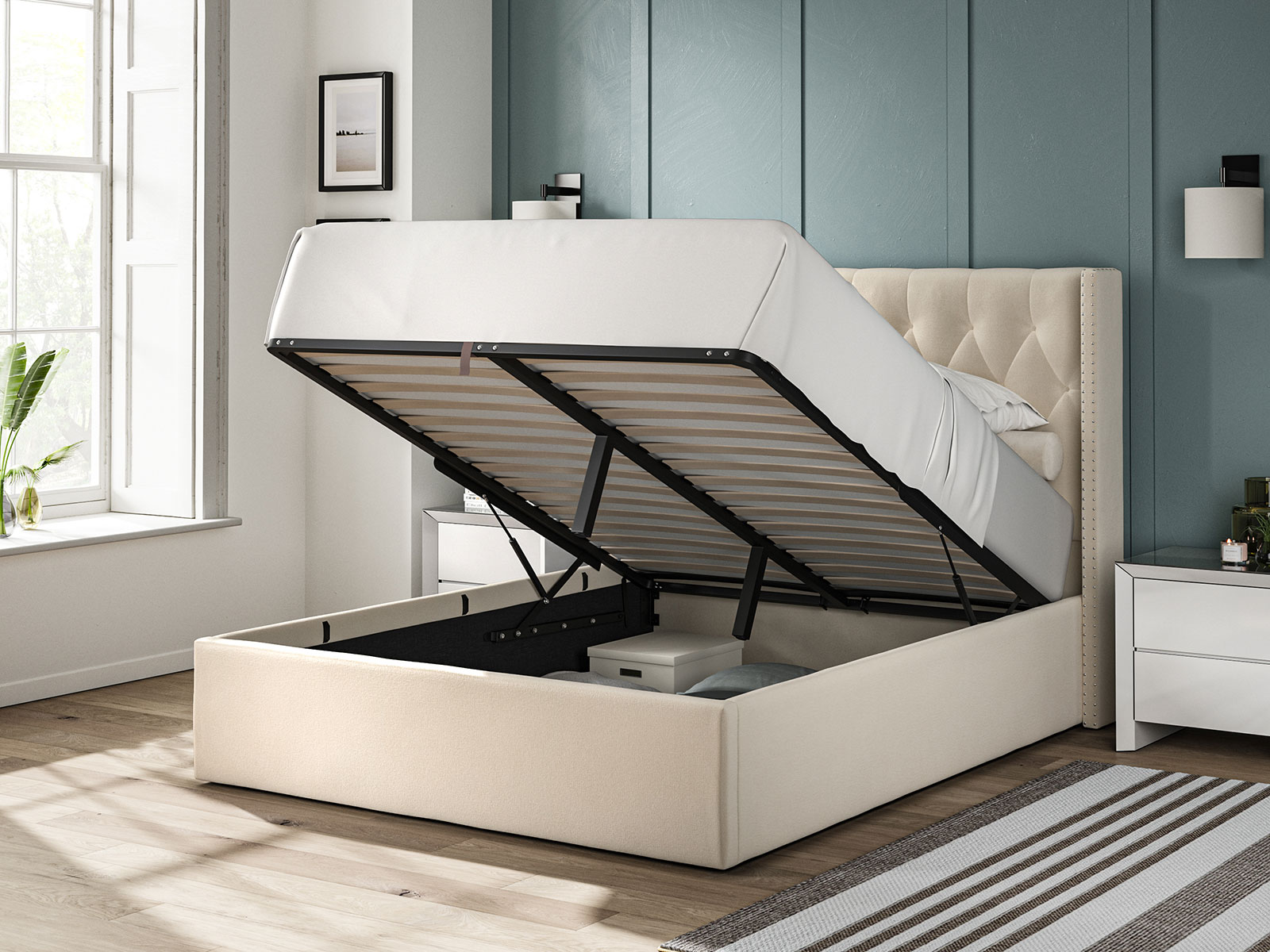 ?˜Gas cylinder easy lift Ottomon Bed (Gas lift capacity is 120 kgs)