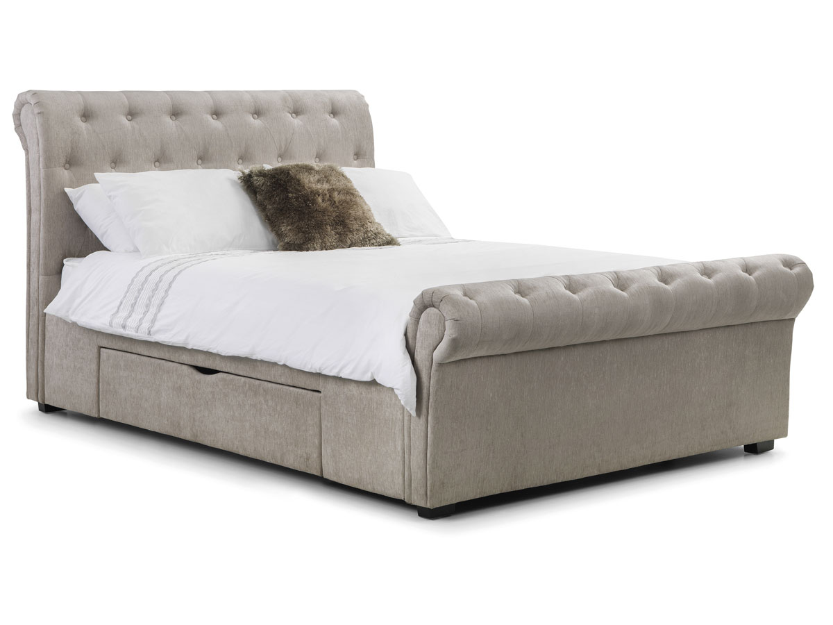 -43%A classic and majestic deep buttoned, scroll feature bed upholstered in a soft touch mink chenille fabric. Sprung slatted base for extra comfort and prolonged mattress life.