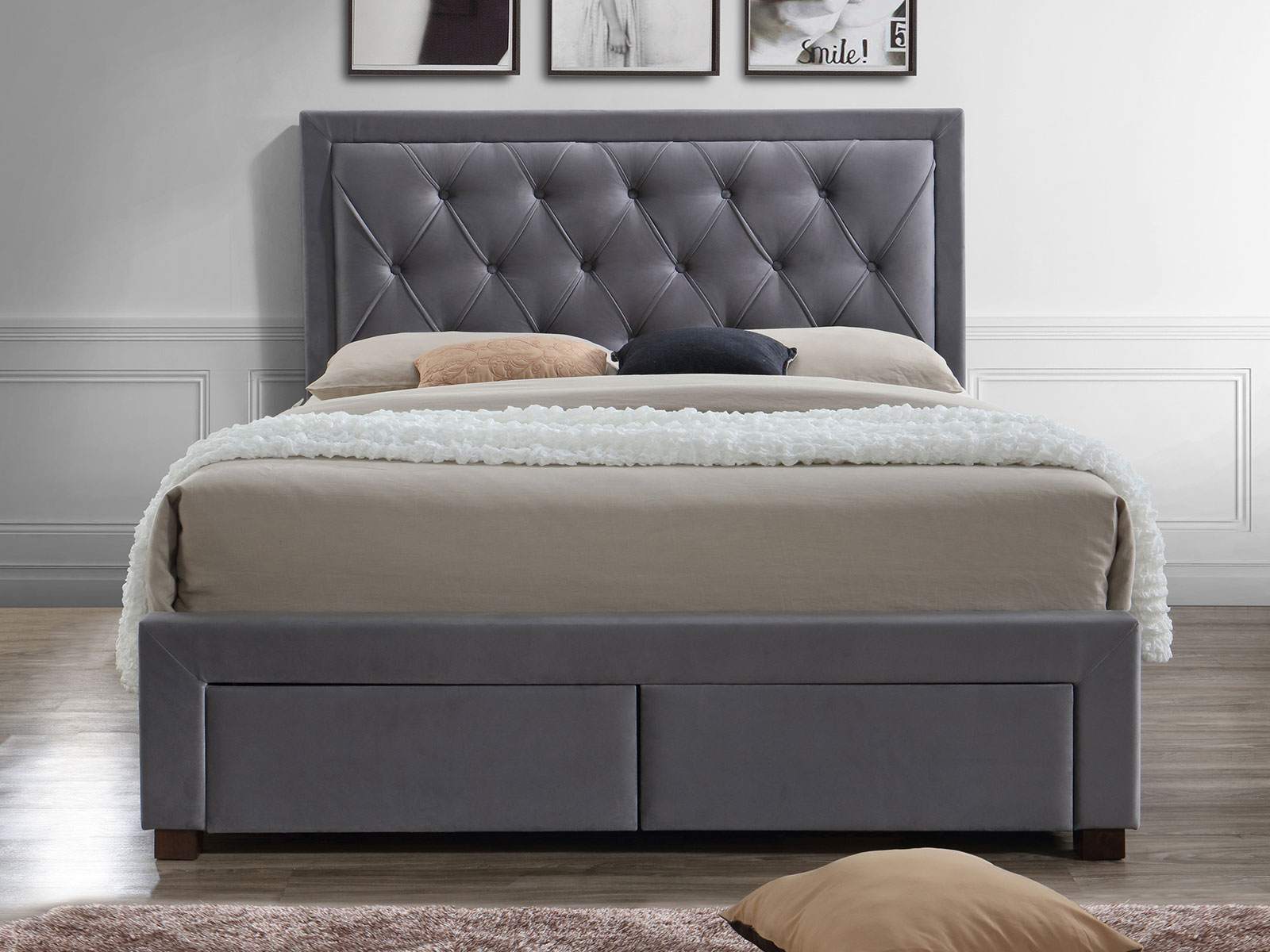 Upholstered in a grey or black luxurious fabric and features handy storage drawers to stowaway away your belongings.