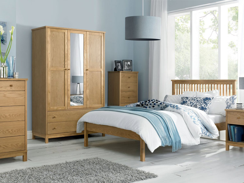 With its clean and simple lines; it is a timeless range that offers versatility through its choice of storage cabinet options including an underbed drawer which comes with a protective dust cover. Practical and compact; the Atlanta Oak is finished in a hard-wearing lacquer with additional features such as superior sprung slatted bed base and conical wooden handle.Crafted using solid wood frames and oak veneered panels with earthy and organic tones; the Atlanta Oak range brings a sense of stylish comfort to everyday life.