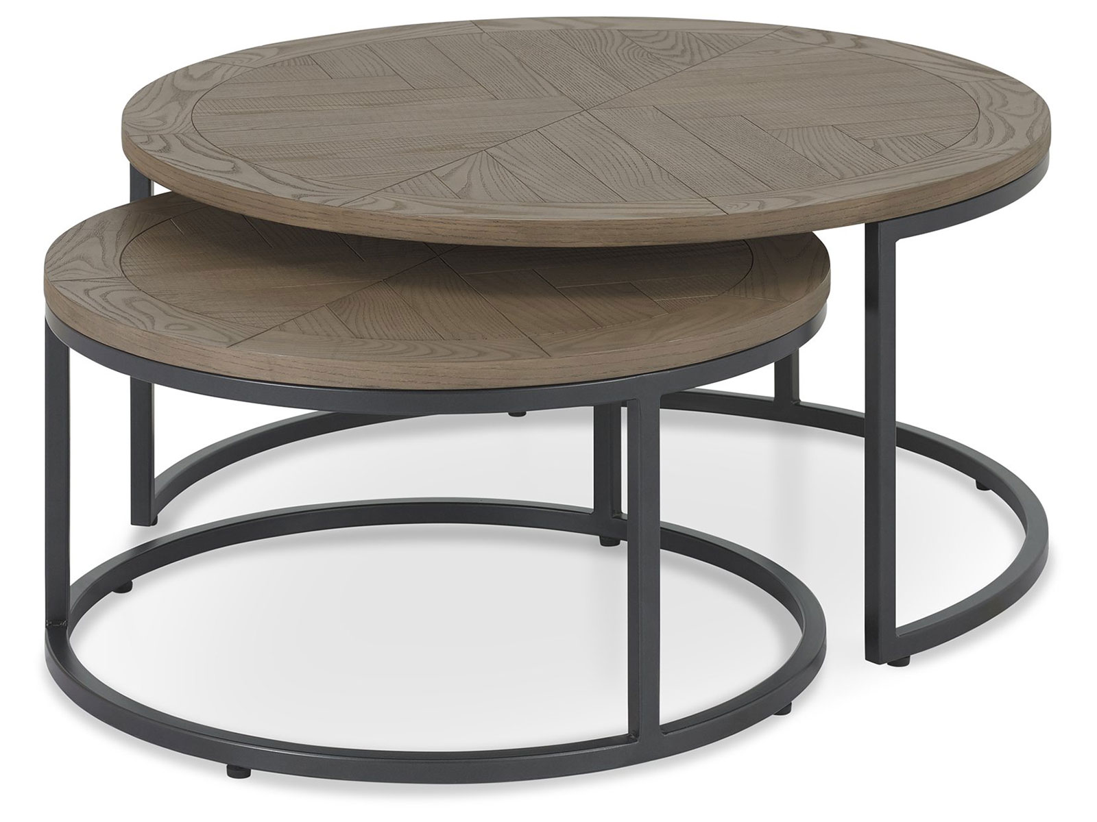 A bold and contemporary design that contrasts saw cut ash marquetry tops in a weathered finish with a fully welded black powder coated metal base, giving the range an on trend industrial look. Each of the hand-crafted boarded chevron patterned tops are wire brushed and distressed to give a rustic look and tactile feel, making the most of the beautiful and varied grains of ash. The radiused tops and bases combine beautifully with the linear frames to make a statement in any setting.