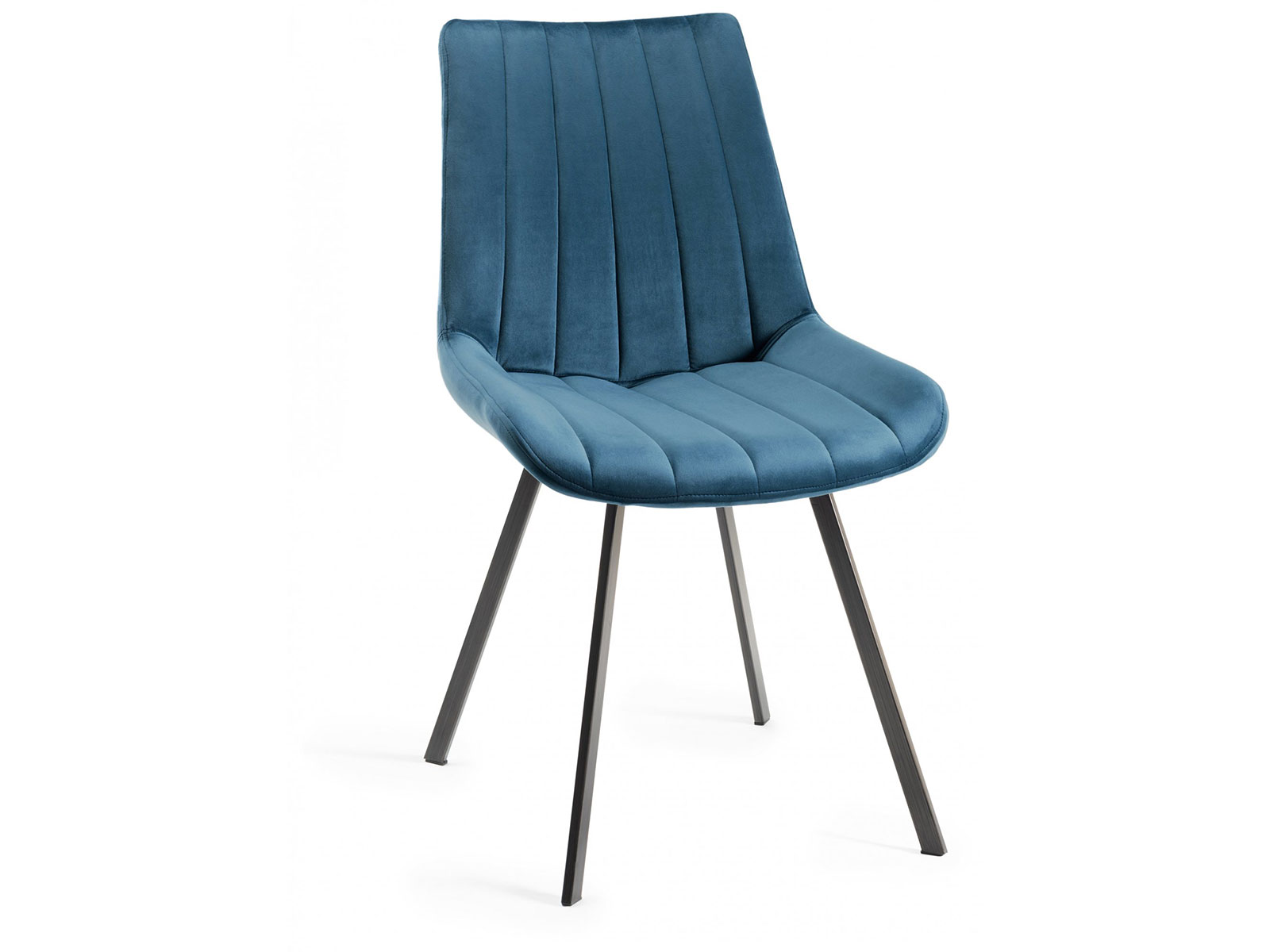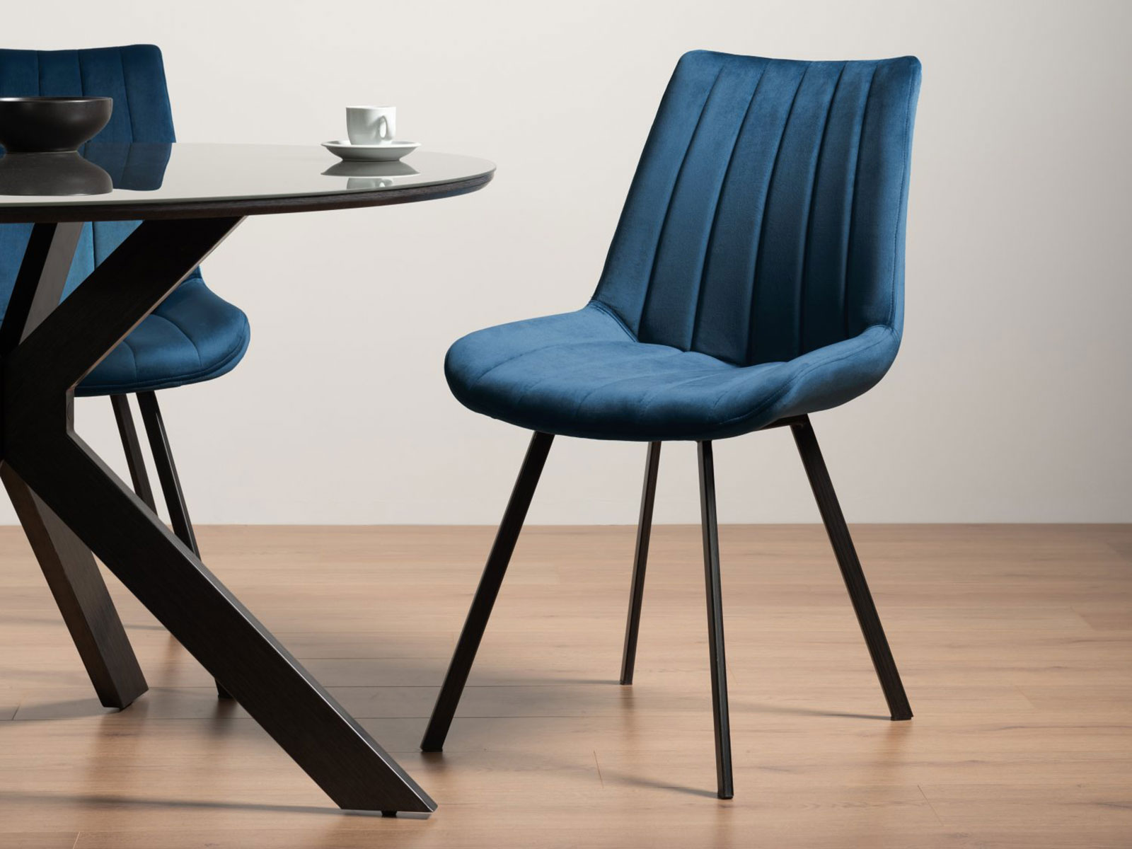 Bentley Designs Fontana – Blue Velvet Fabric Chairs with Black Legs (Pair)