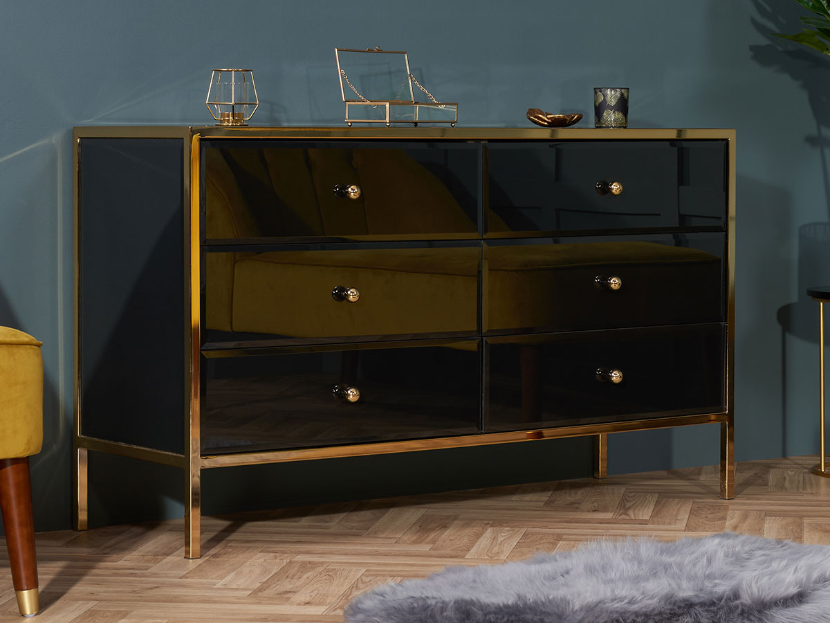 The Birlea Fenwick collection exudes glamour, charm and luxury. At home in any classic room, this stunning design demands attention thanks to its bevelled glass black panels and stunning gold frame.