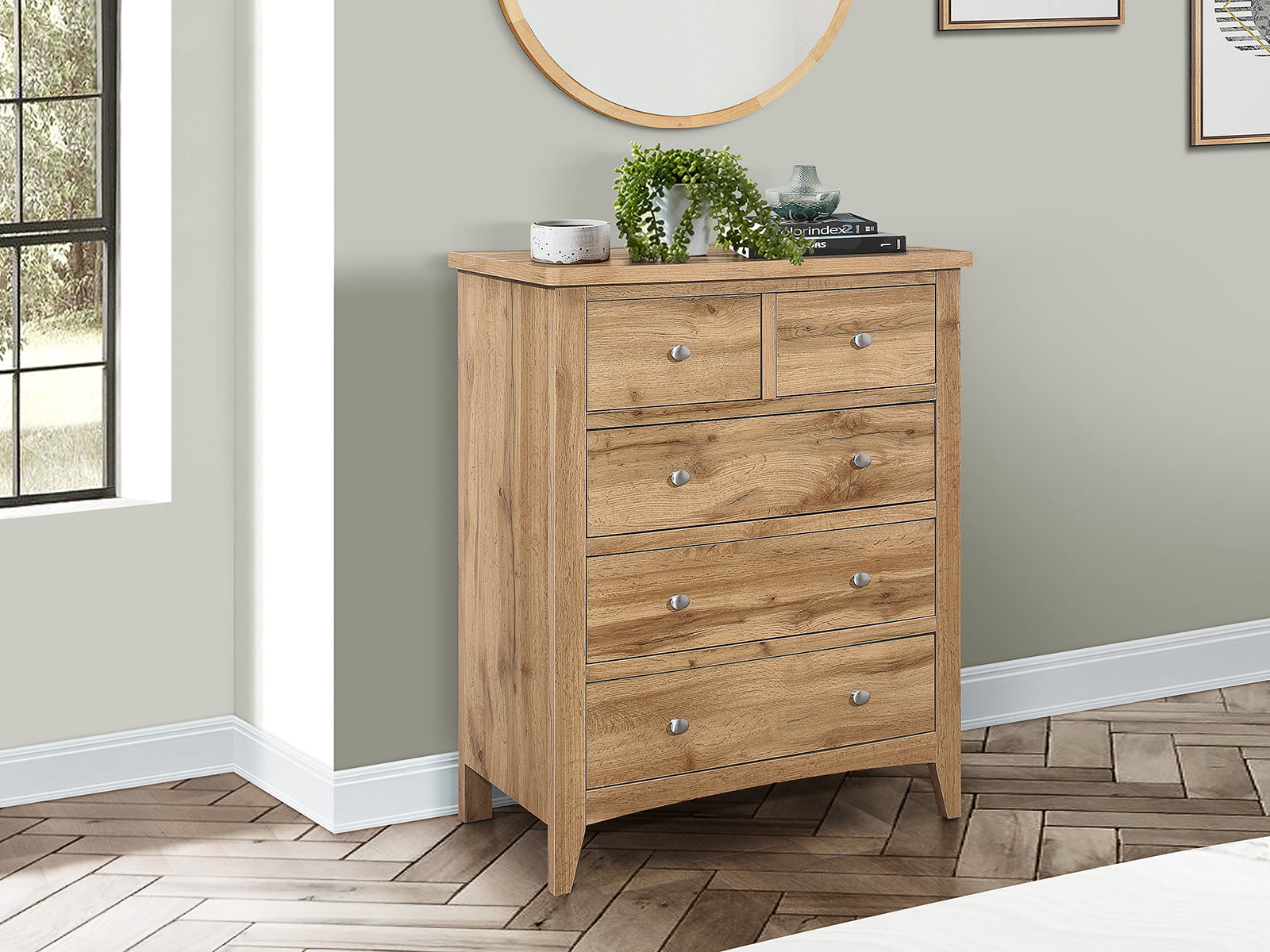 Featuring three large drawers and two smaller drawers, this 3+2 chest provides a generous amount of space to store clothes, linens and accessories.