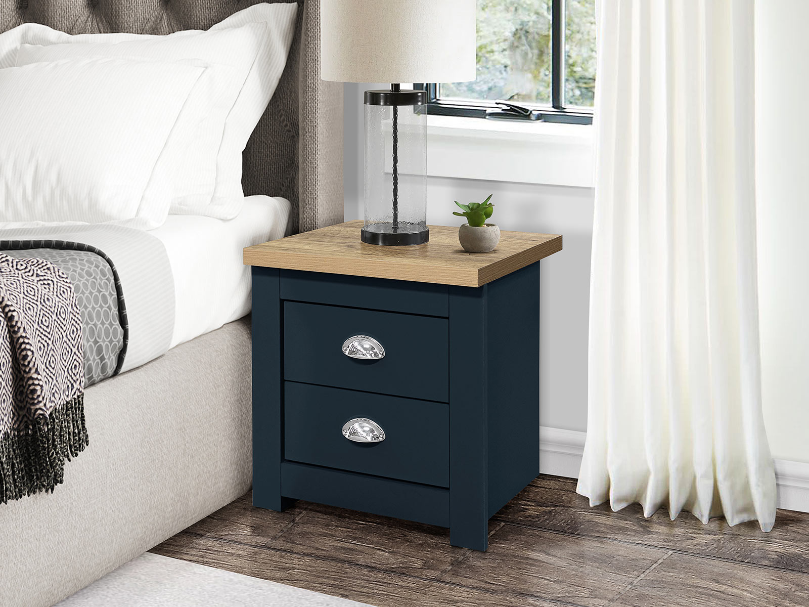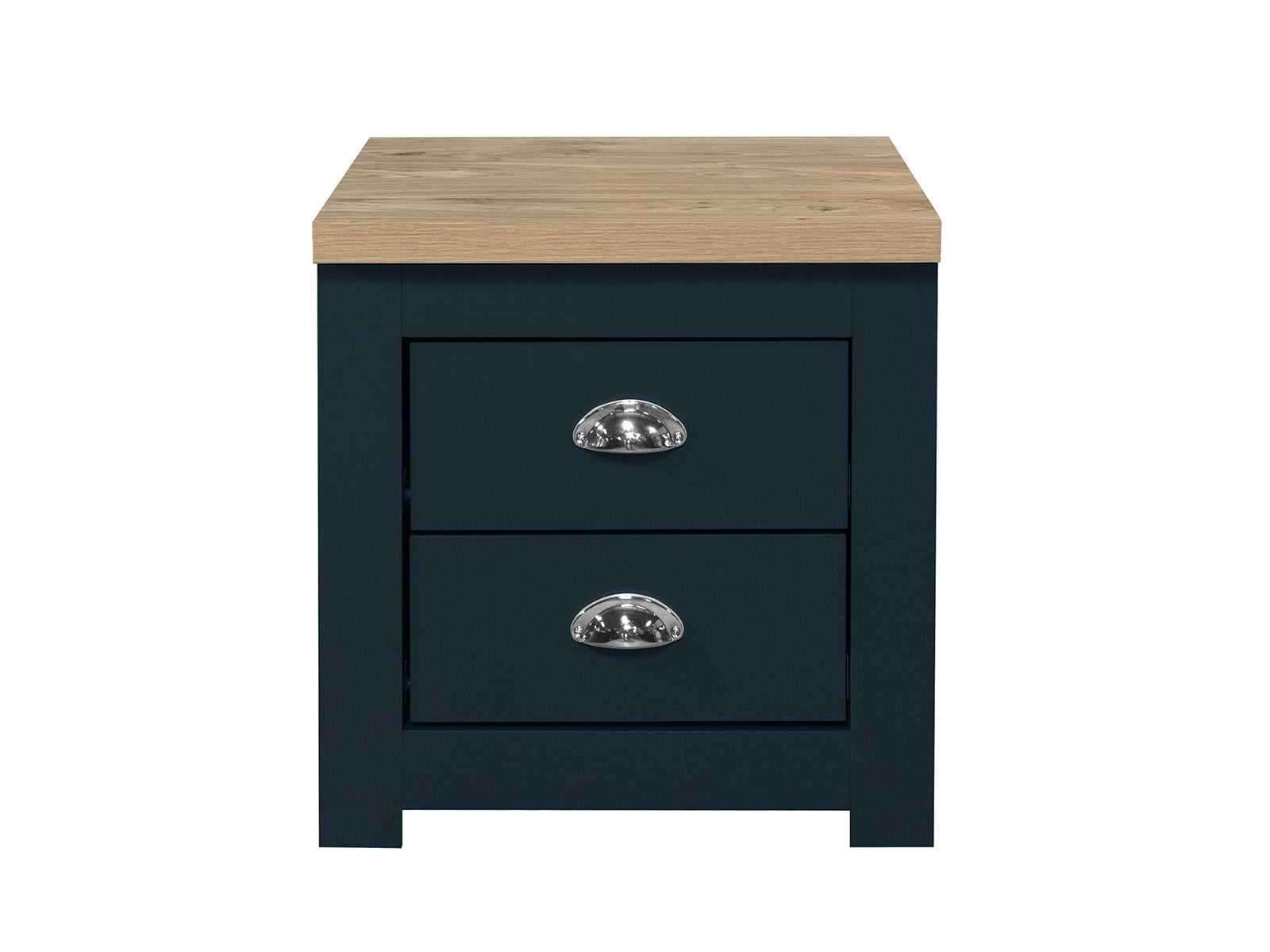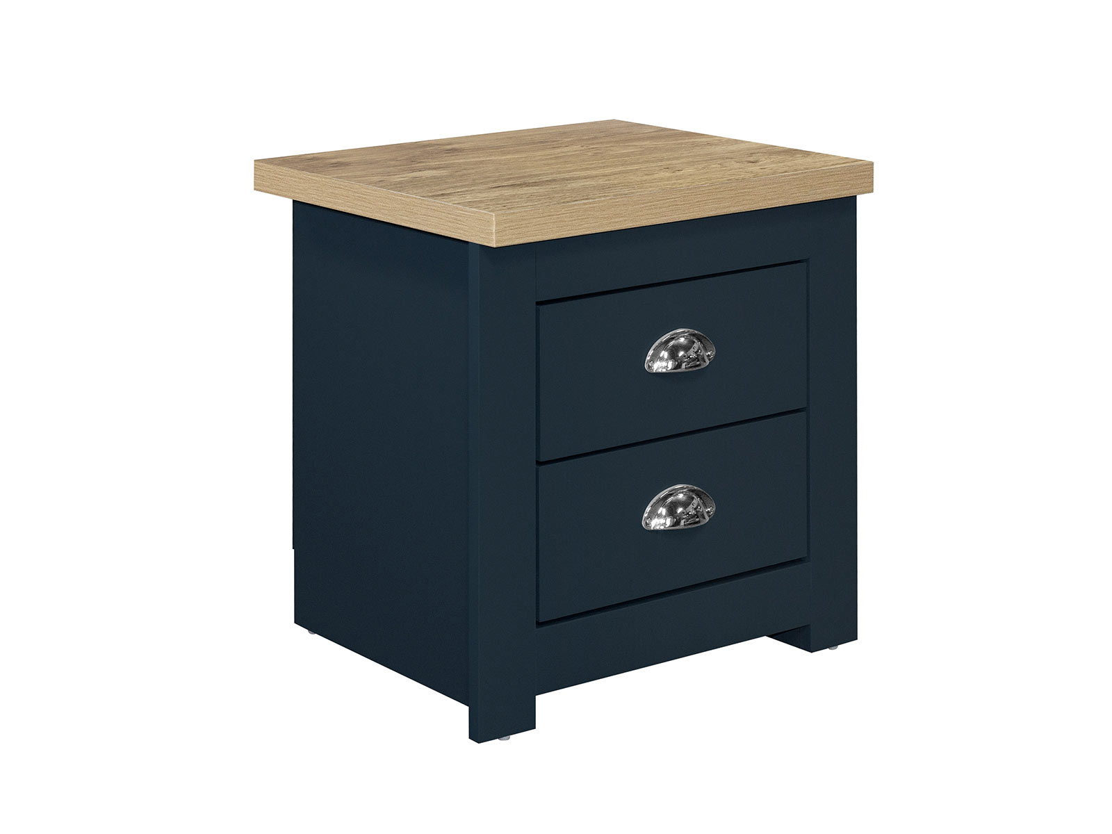 The Highgate 2 drawer bedside features 2 handy drawers ideal for storing away any belongings. The drawers are finished off with beautiful silver cup handles.