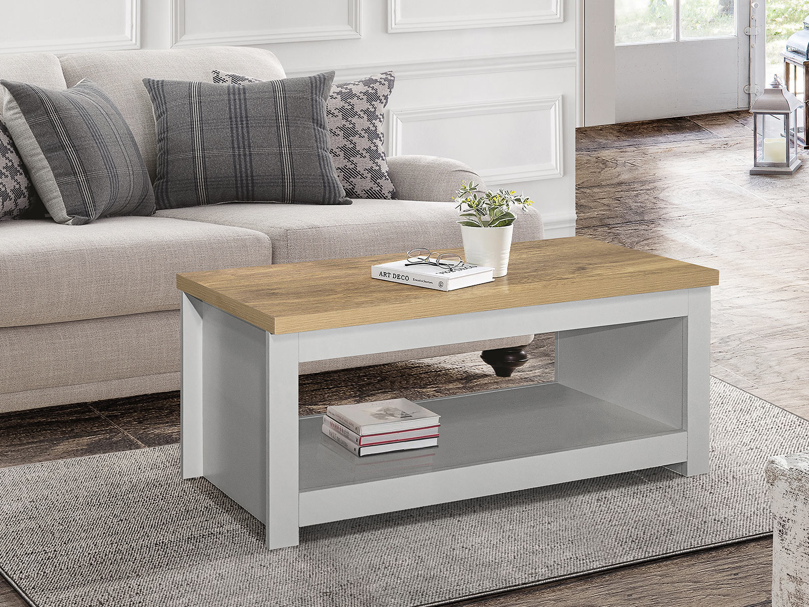 The Highgate coffee table features a large lower shelf ideal for storage.