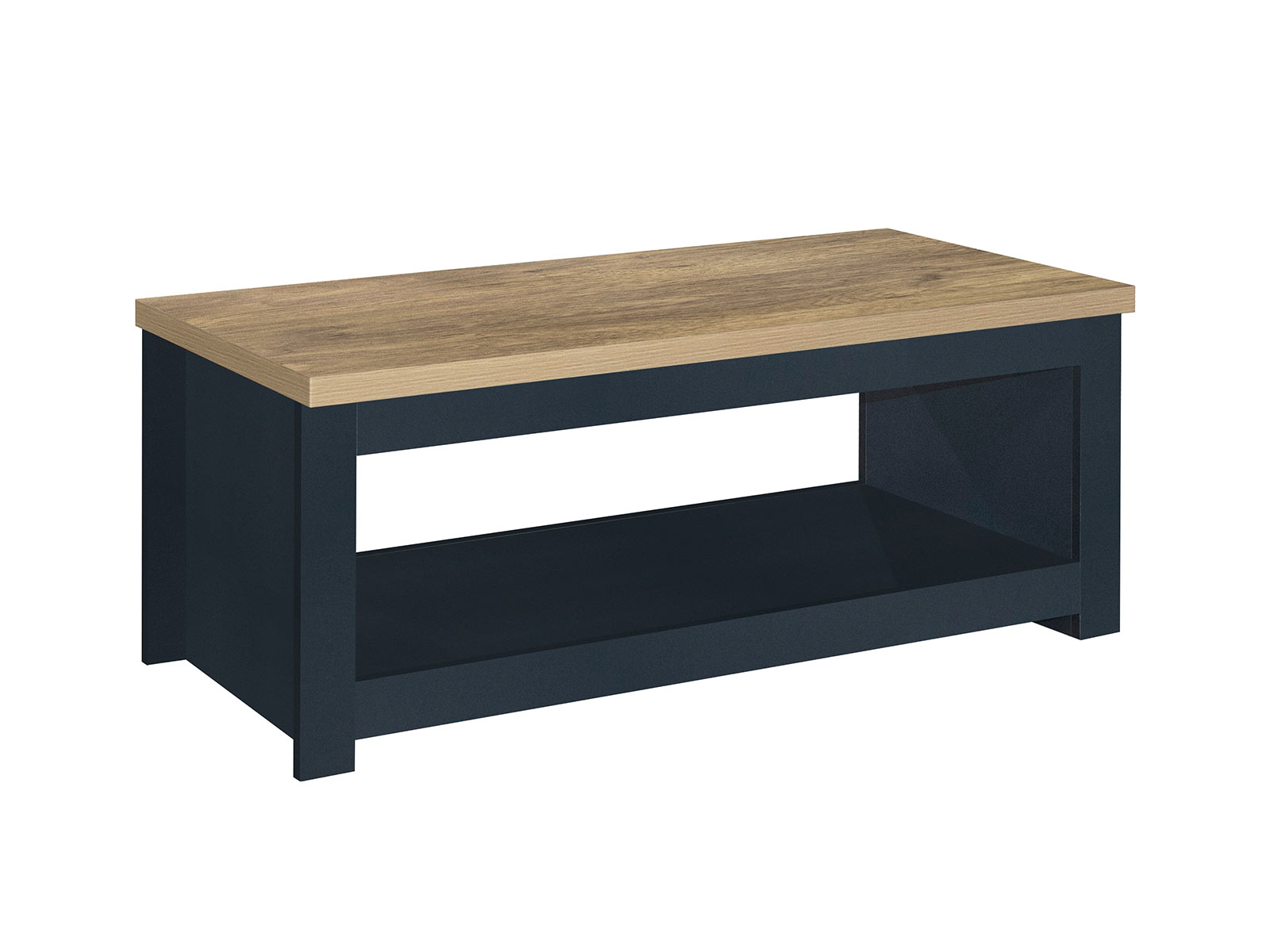 The Highgate coffee table features a large lower shelf ideal for storage.