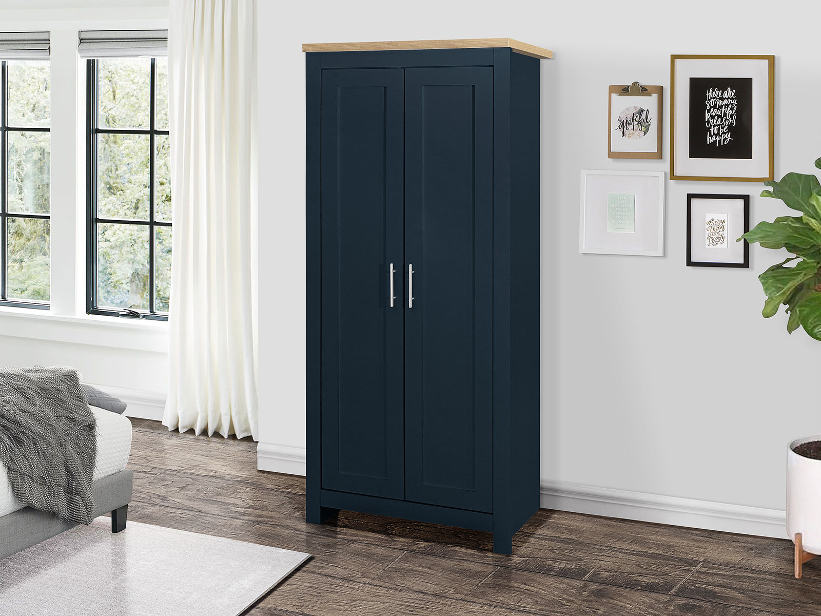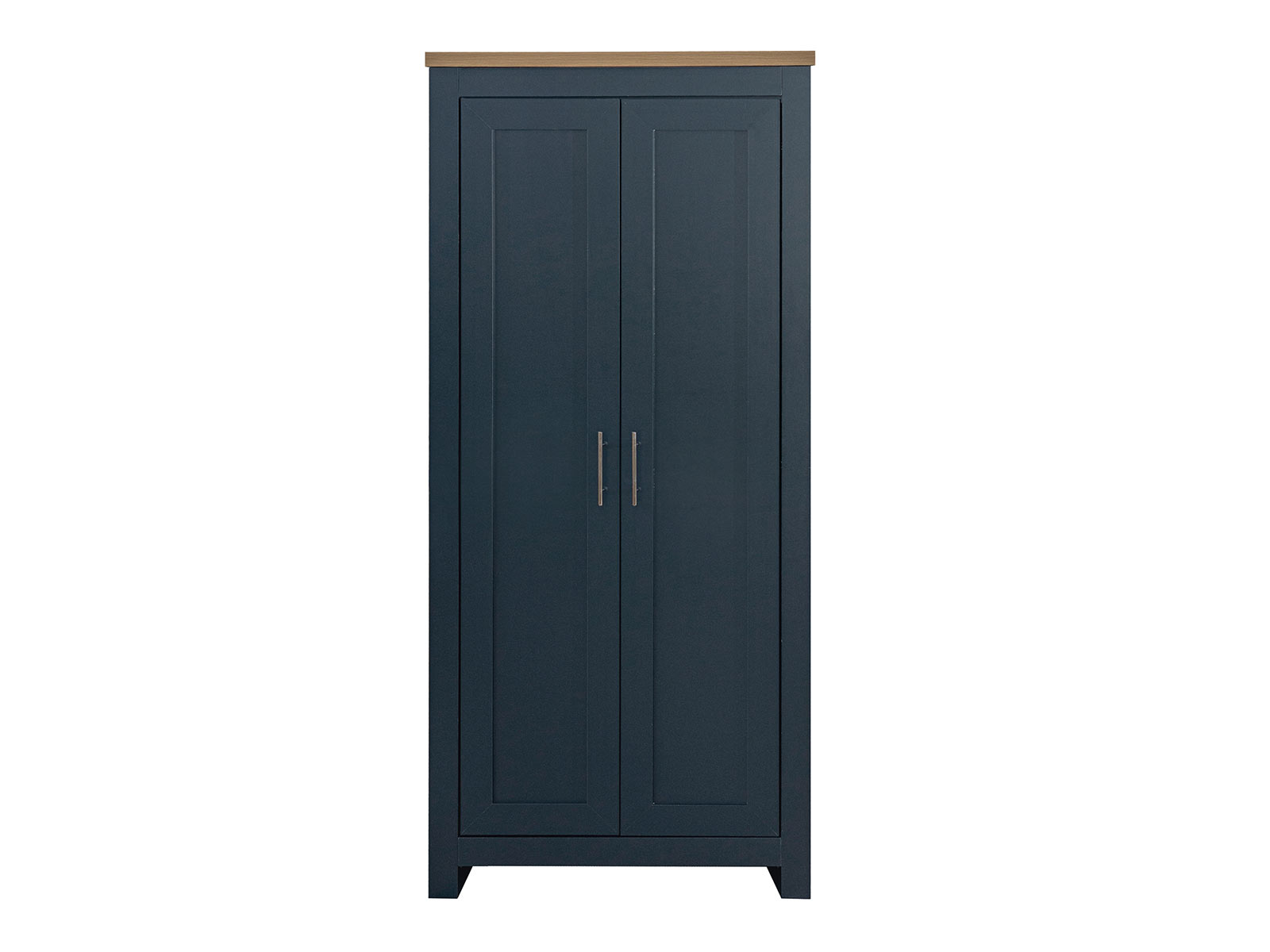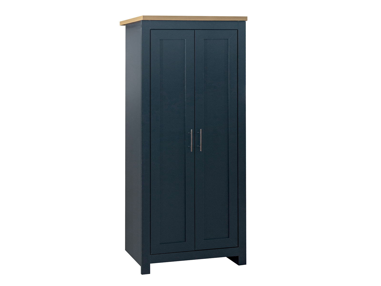 The Highgate 2 door wardrobe is spacious behind double doors, featuring a hanging rail. The doors are finished off with contemporary silver handles.
