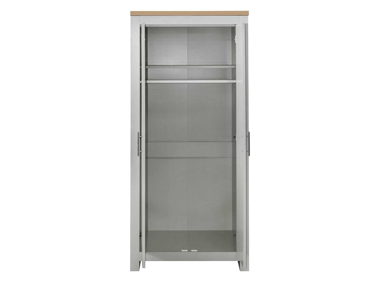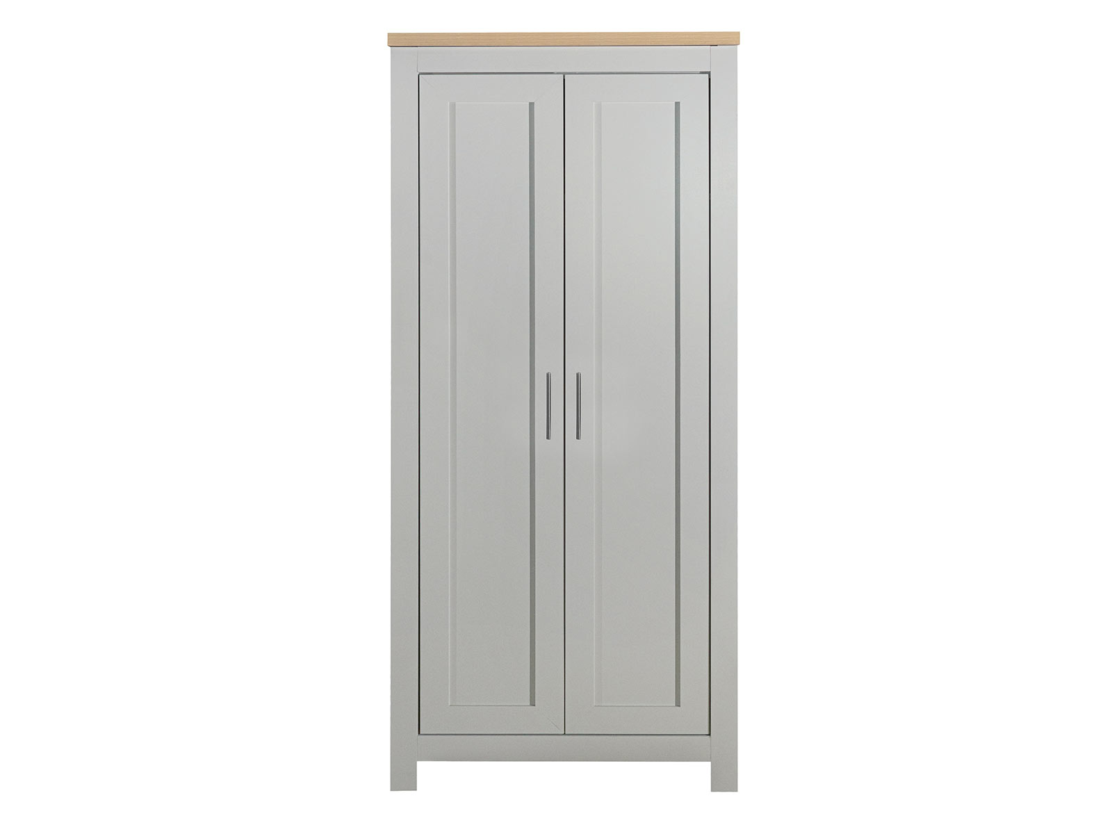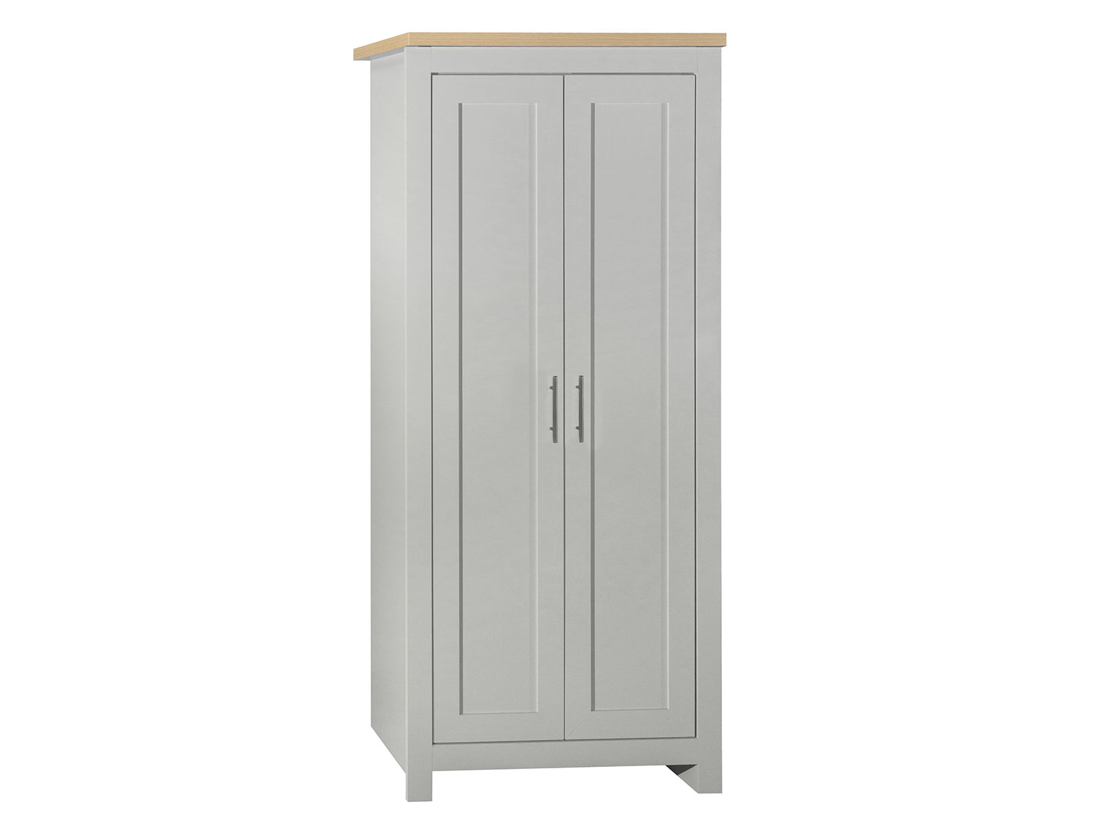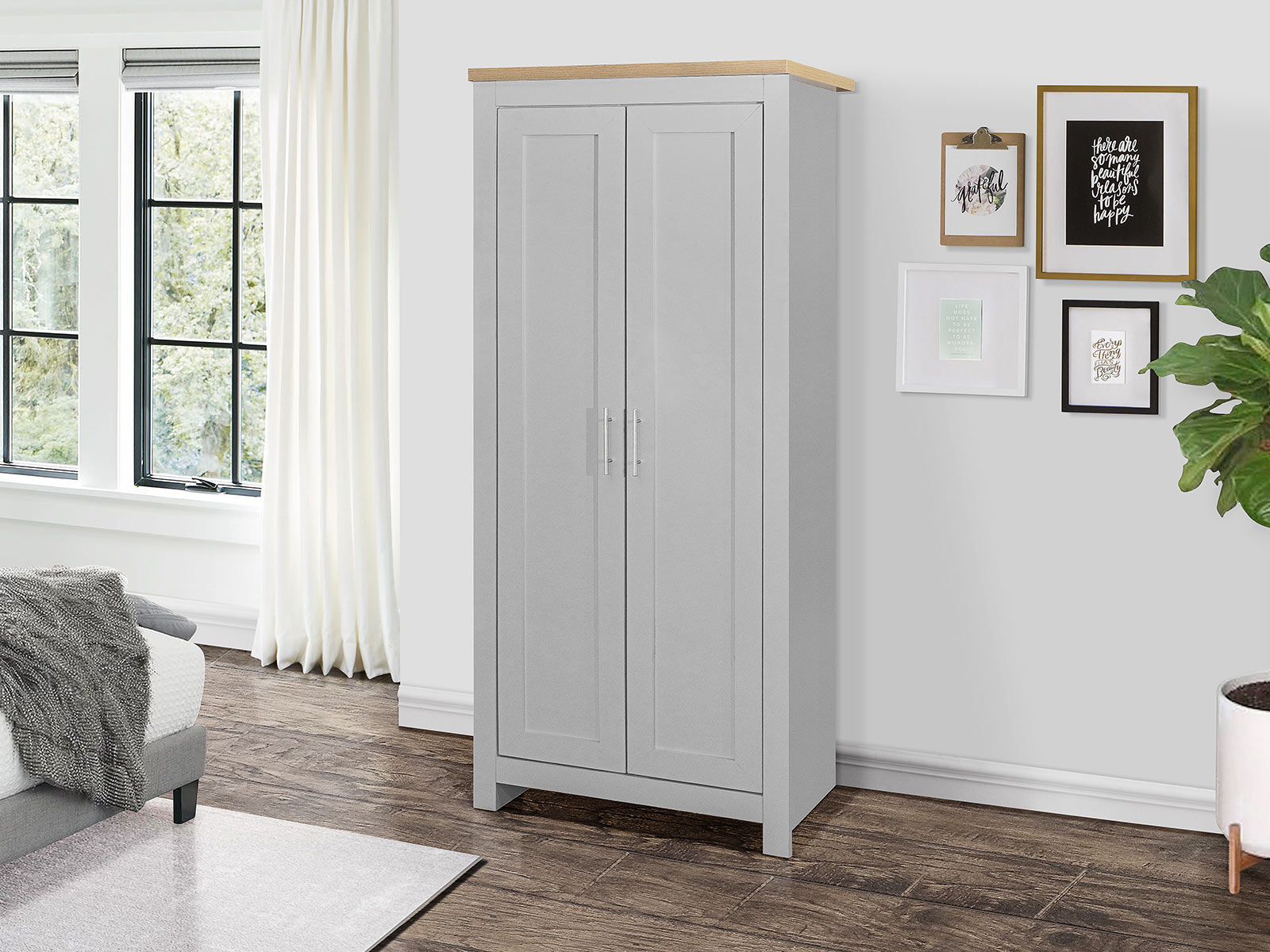 The Highgate 2 door wardrobe is spacious behind double doors, featuring a hanging rail. The doors are finished off with contemporary silver handles.