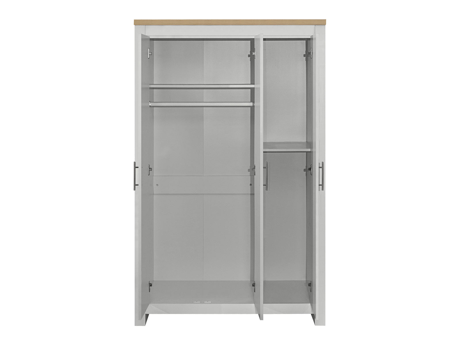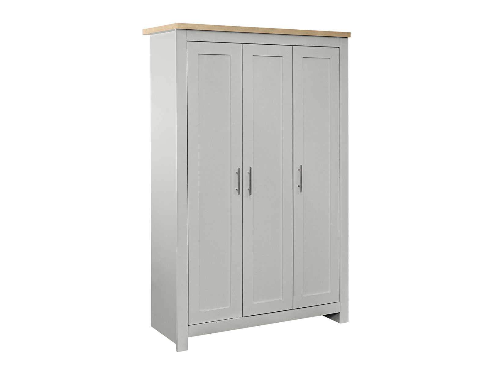 The Highgate 3 door wardrobe is spacious behind double doors, featuring a hanging rail. The doors are finished off with contemporary silver handles.