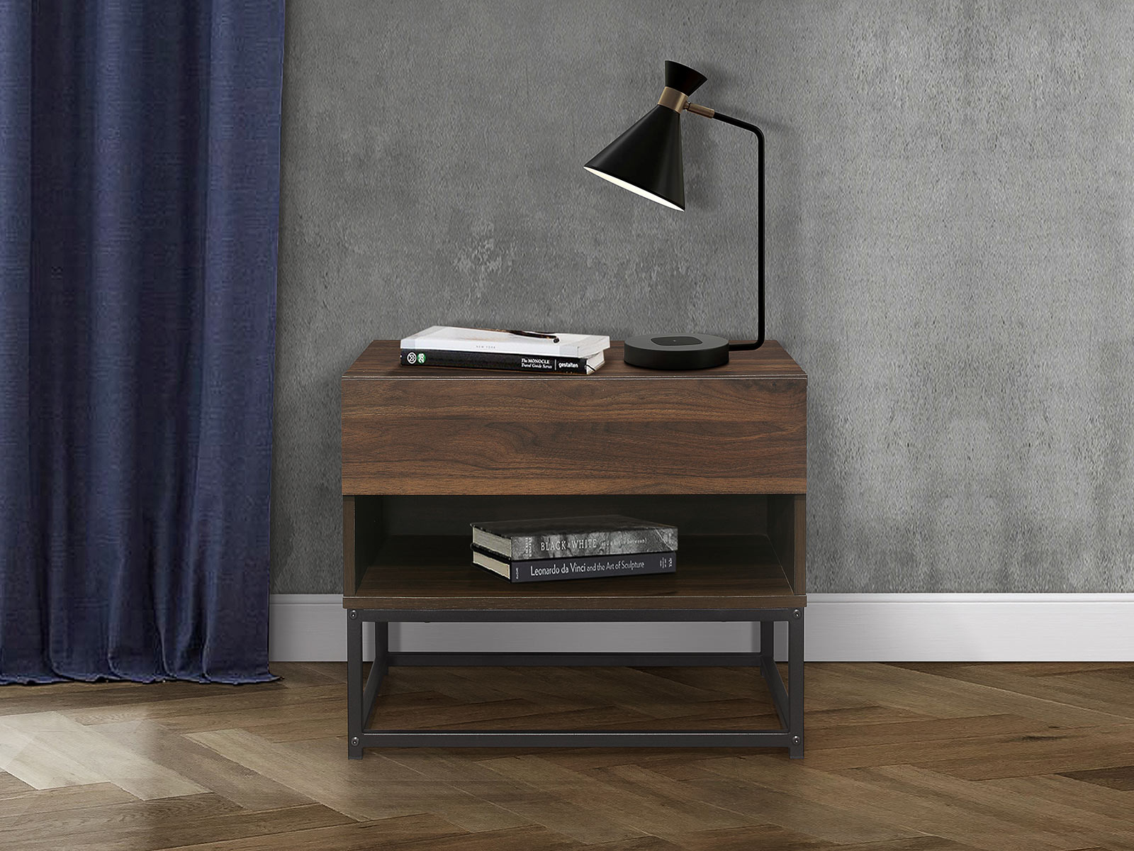 Crafted from a mix of metal and walnut effect wood, the Houston’s distinctive, modern style oozes sophistication inspired by modern architecture.