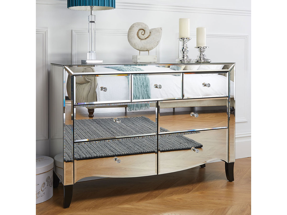 This classically designed 3 Over 4 Chest is constructed from a MDF frame and features a mirrored finish with bevelled edges and elegant mock crystal handles.