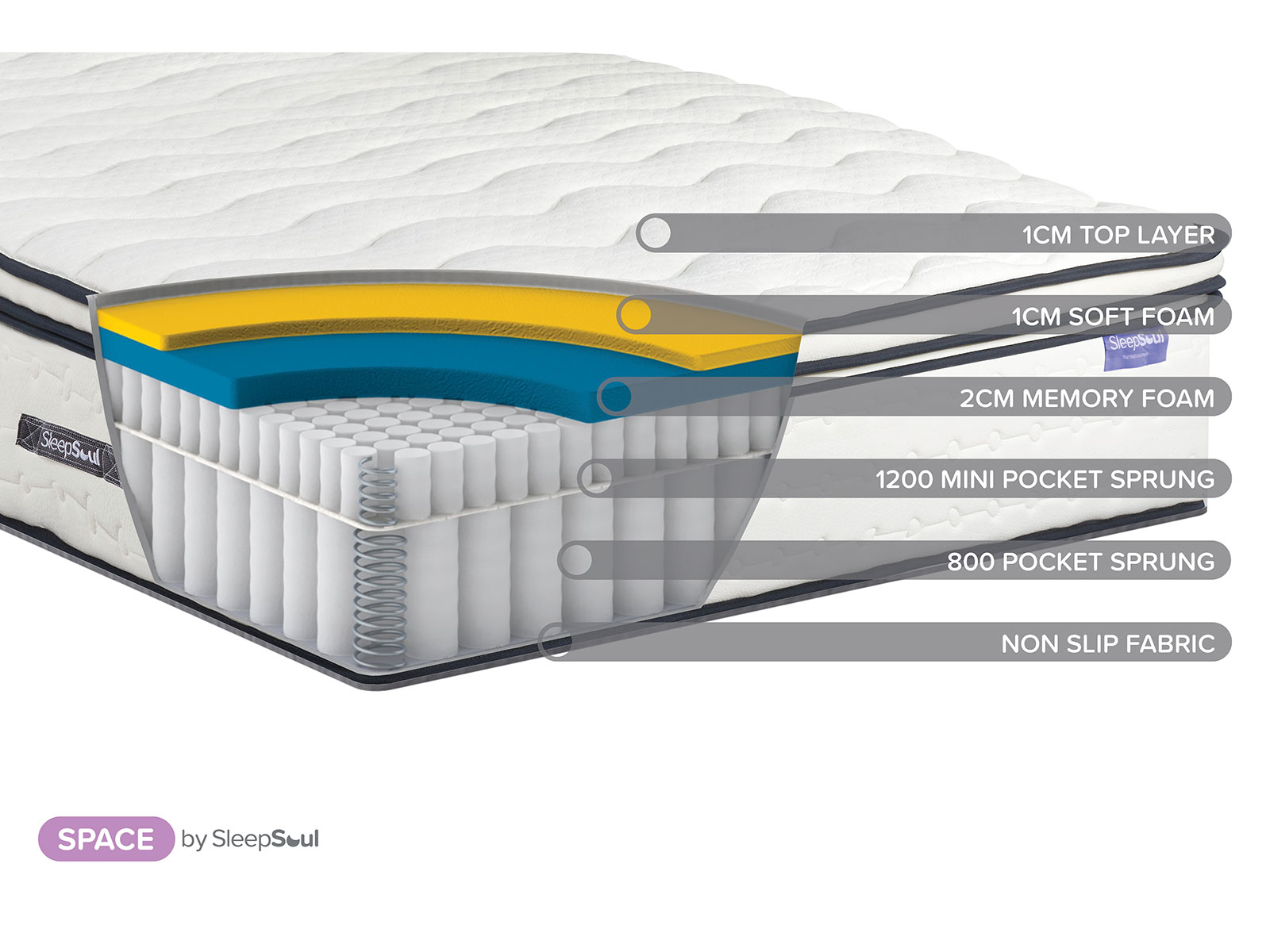 Our SleepSoul range is available in 4 sizes; 3ft Single, 4ft small double, 4ft6 double and 5ft King size.