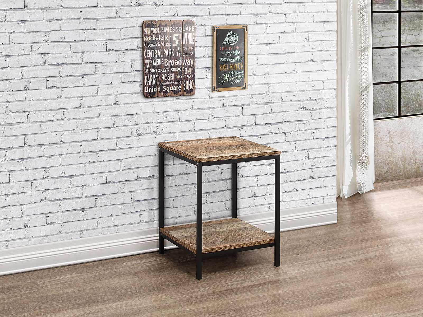 • Crafted from a metal frame with industrial-effect detail and has a wood-effect finish.