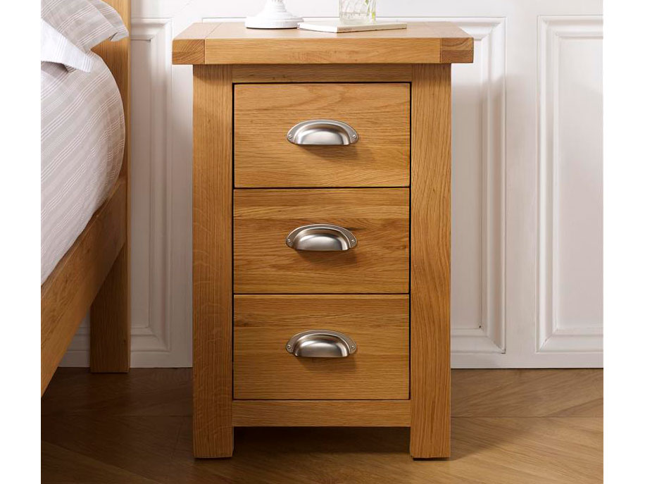 The perfect ideal spot for a bedside lamp, this large three drawer bedside is practical for separating your items among the three spacious drawers.
