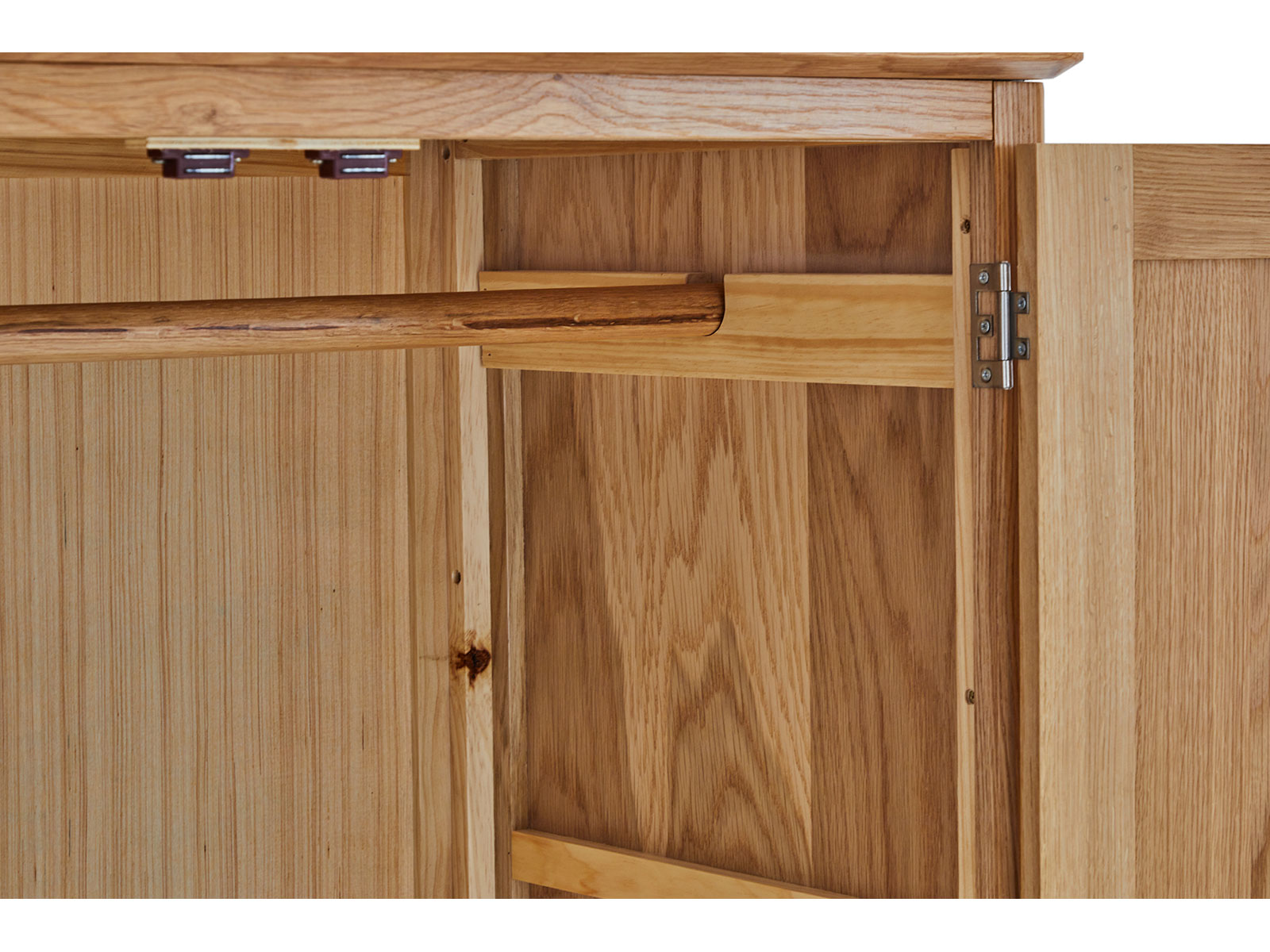 This collection is subtle but sophisticated; clean lines, solid oak tapered legs and posts. It is crafted from Oak & Oak veneers with a brush oval handle giving the product contrast and