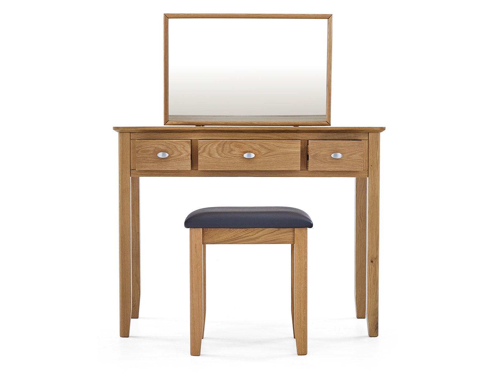 This collection is subtle but sophisticated; clean lines, solid oak tapered legs and posts. It is crafted from Oak & Oak veneers with a brush oval handle giving the product contrast and