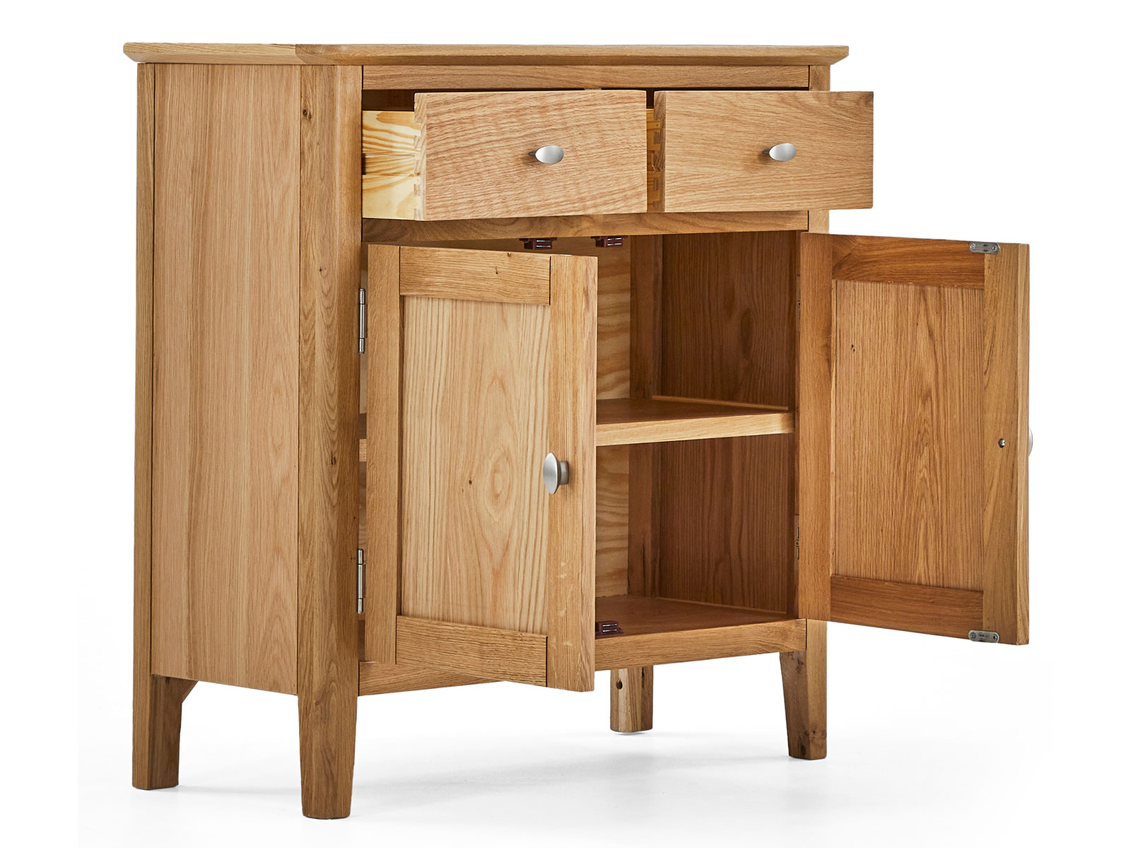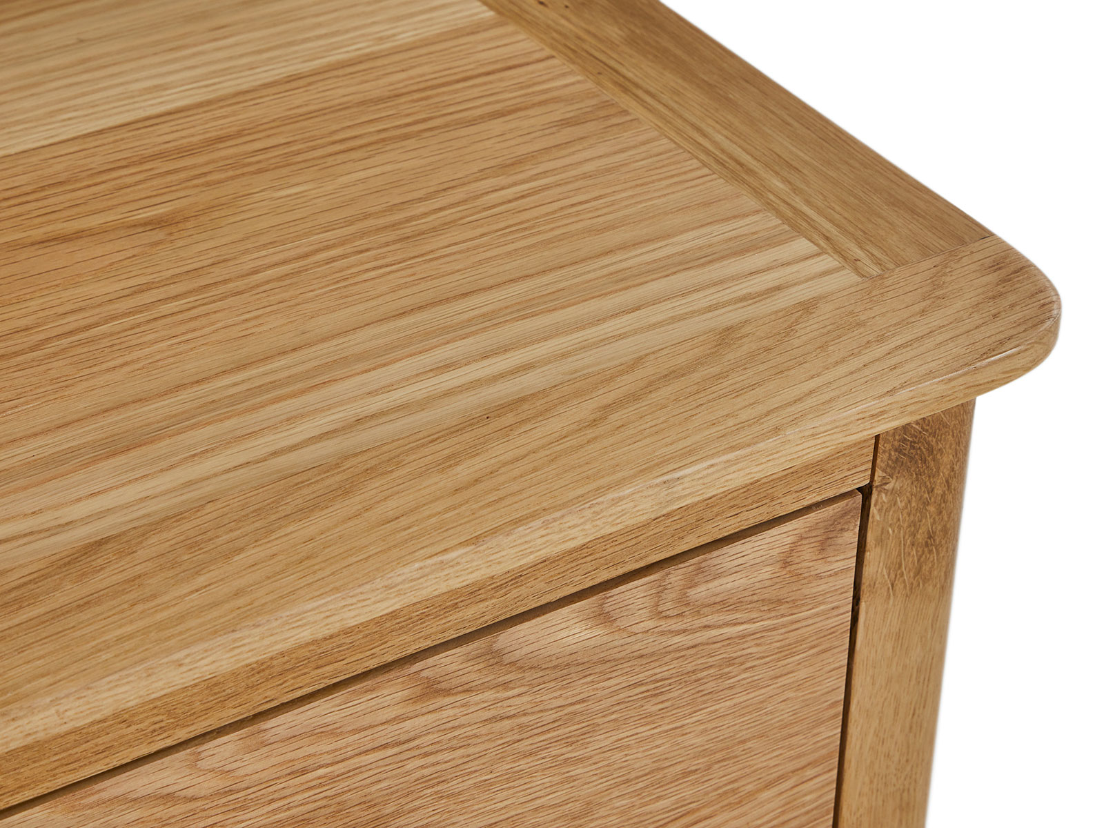 This collection is subtle but sophisticated; clean lines, solid oak tapered legs and posts. It is crafted from Oak & Oak veneers with a brush oval handle giving the product contrast and