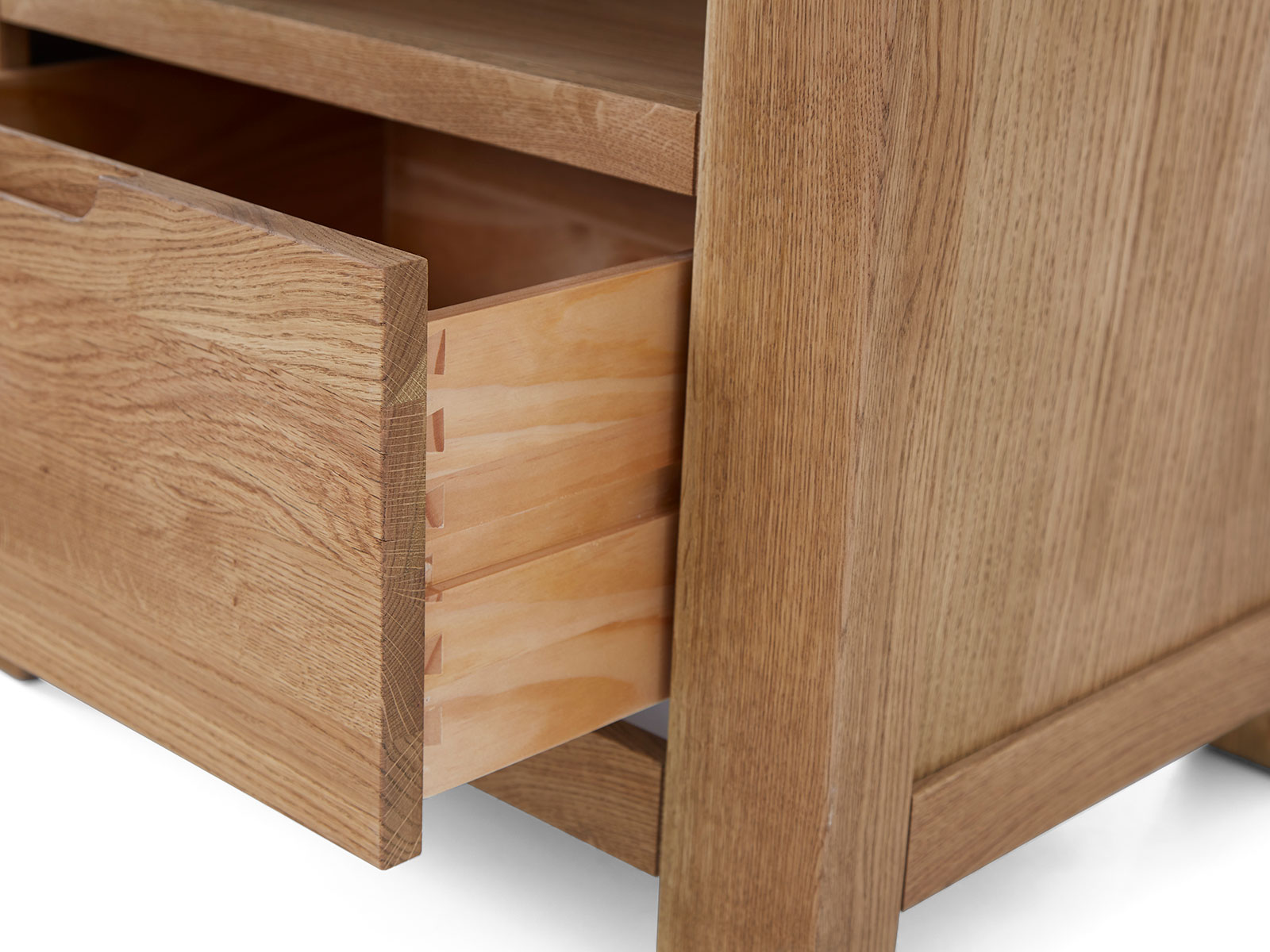 Bergen is beautifully made from solid Oak and Oak veneers. The collection showcases many unique features including inset handles, soft rounded corners and exaggerated exposed wood grain.