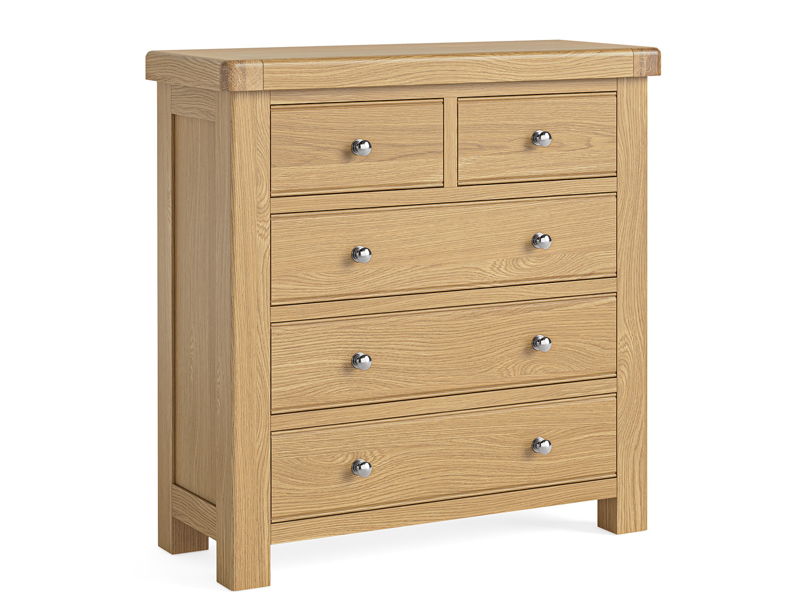 The solid Oak frames and real Oak veneers give Normandy a timeless elegance. The chunky Oak range has the choice of being paired with either an elegant, polished silver handle giving it a luxury contrast against the warm oak or an antique gold cup handle & knob.