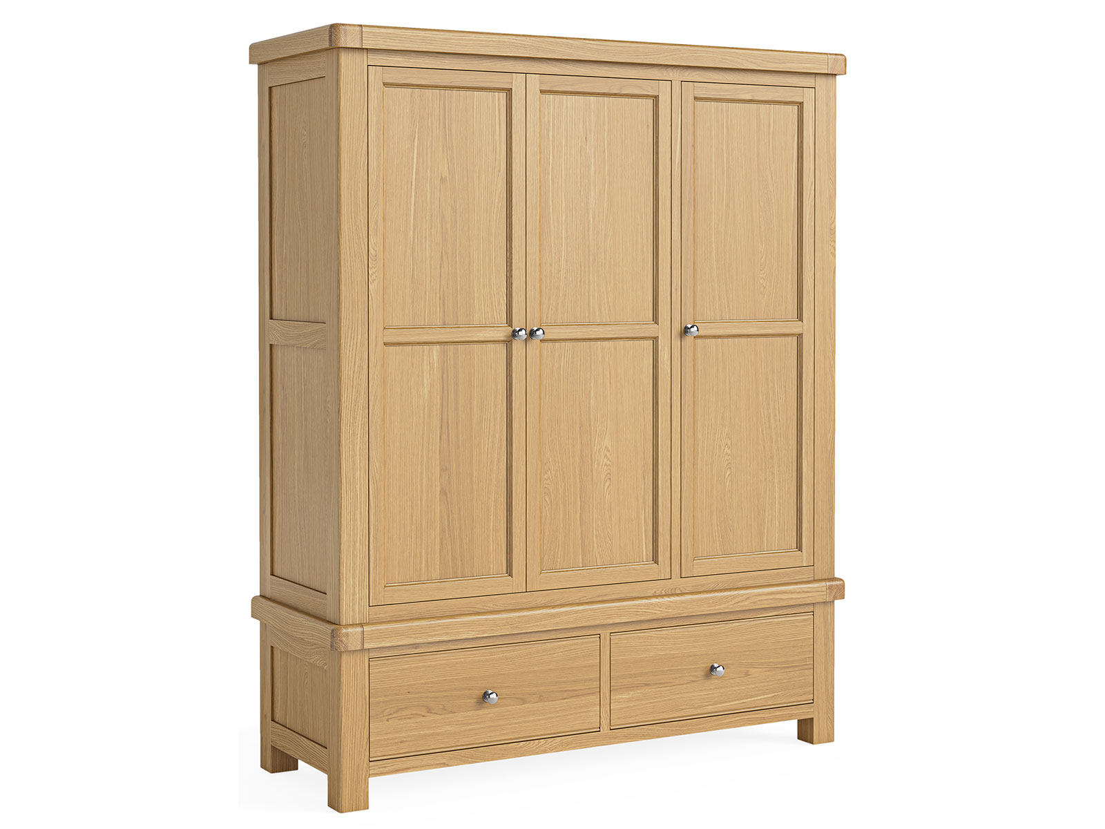 The solid Oak frames and real Oak veneers give Normandy a timeless elegance. The chunky Oak range has the choice of being paired with either an elegant, polished silver handle giving it a luxury contrast against the warm oak or an antique gold cup handle & knob.