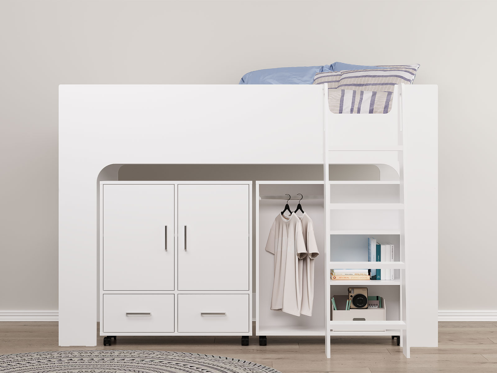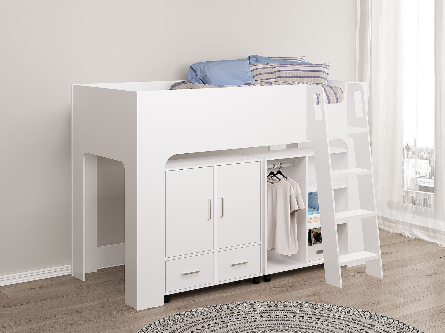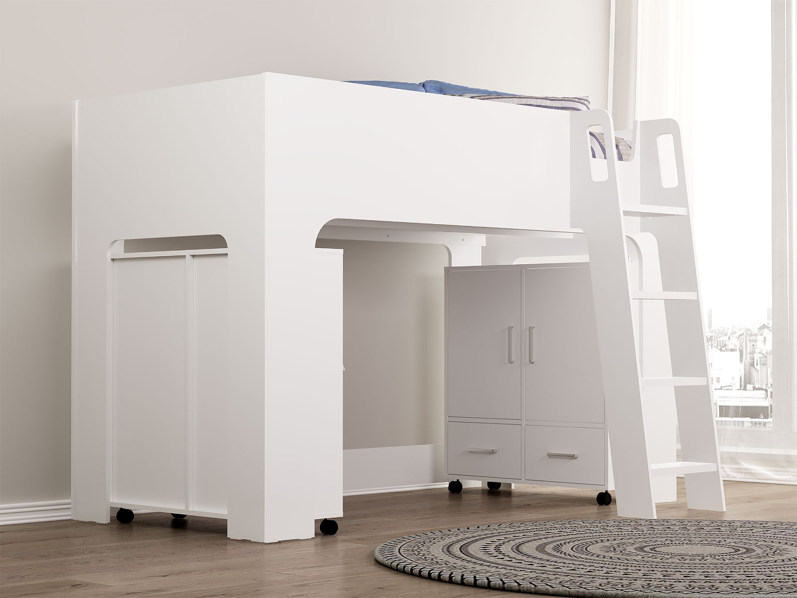 The Eden Mid Sleeper in White combines clean lines with a practical design. Its elevated sleeping platform frees up valuable floor space, making it an ideal solution for small bedrooms. The bright white finish enhances its modern appeal.