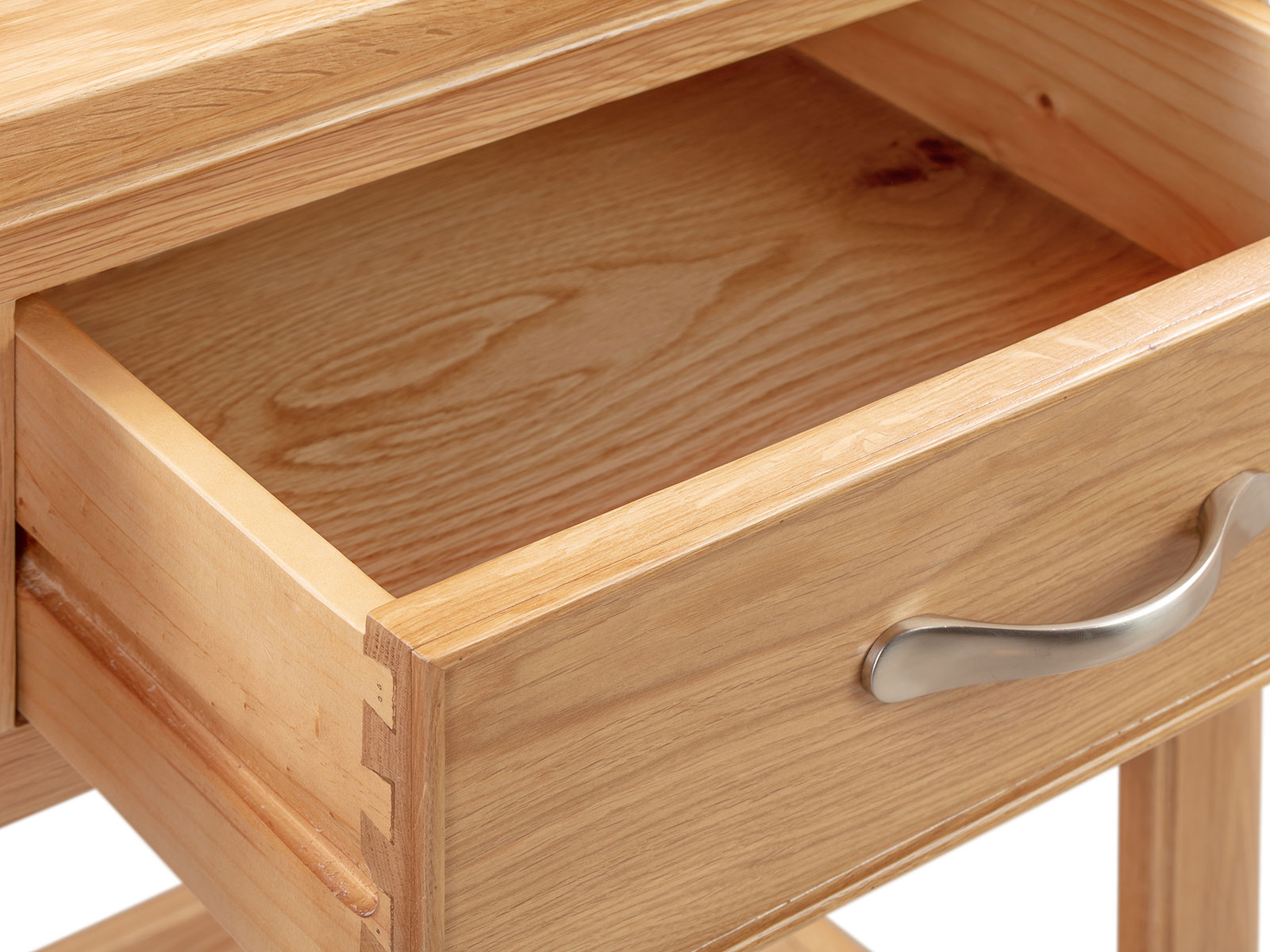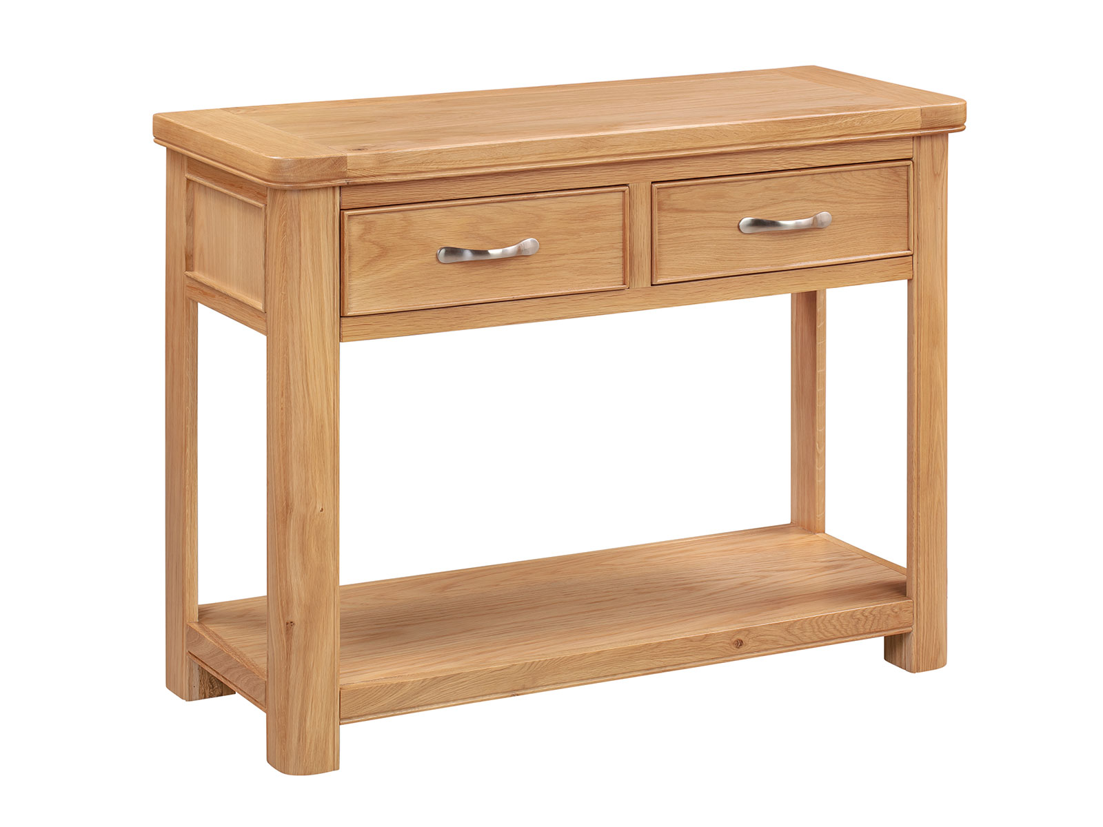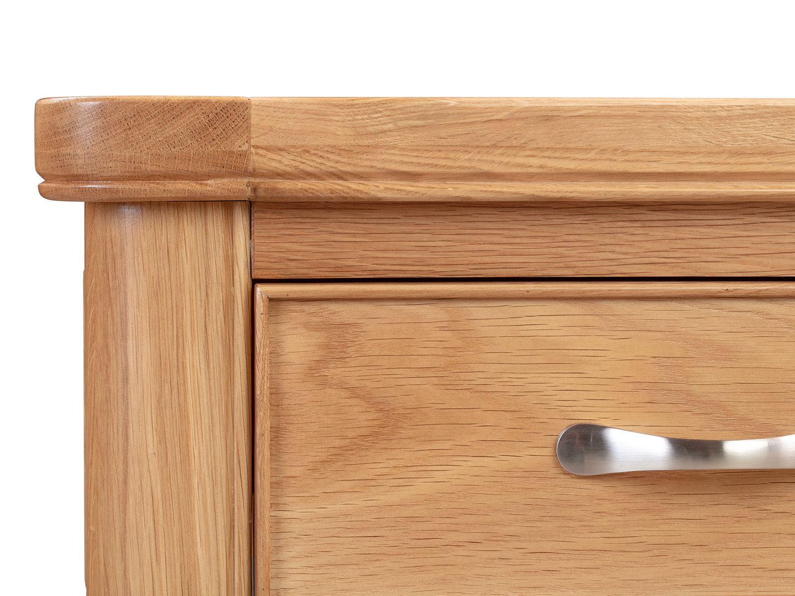 The Blenheim Oak Range of furniture is characterised by curved edges, classic moulding and a contemporary stainless steel handle. Blenheim Oak is finished in a natural colour with a clear lacquer.