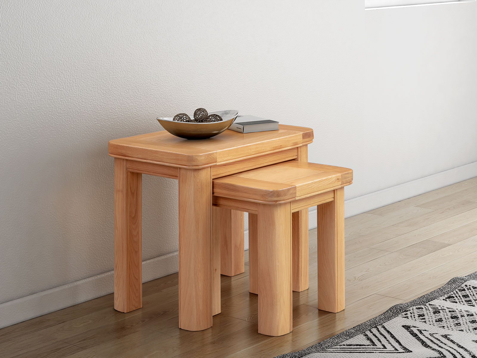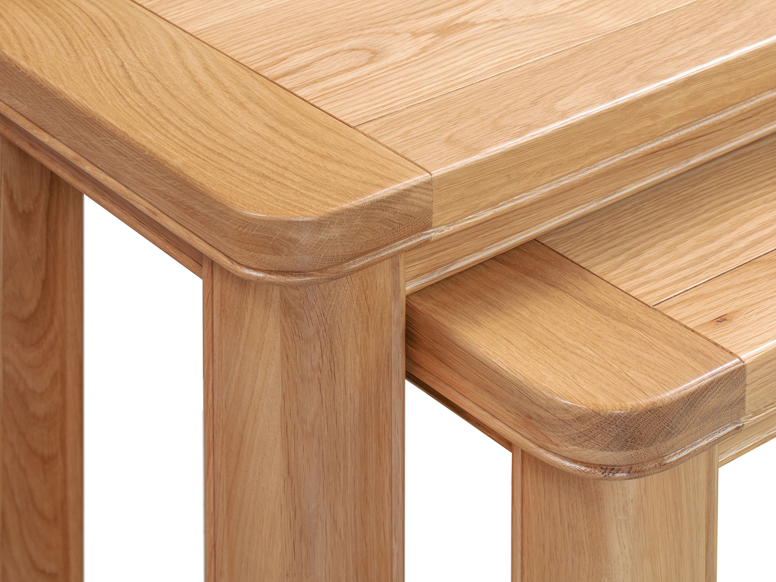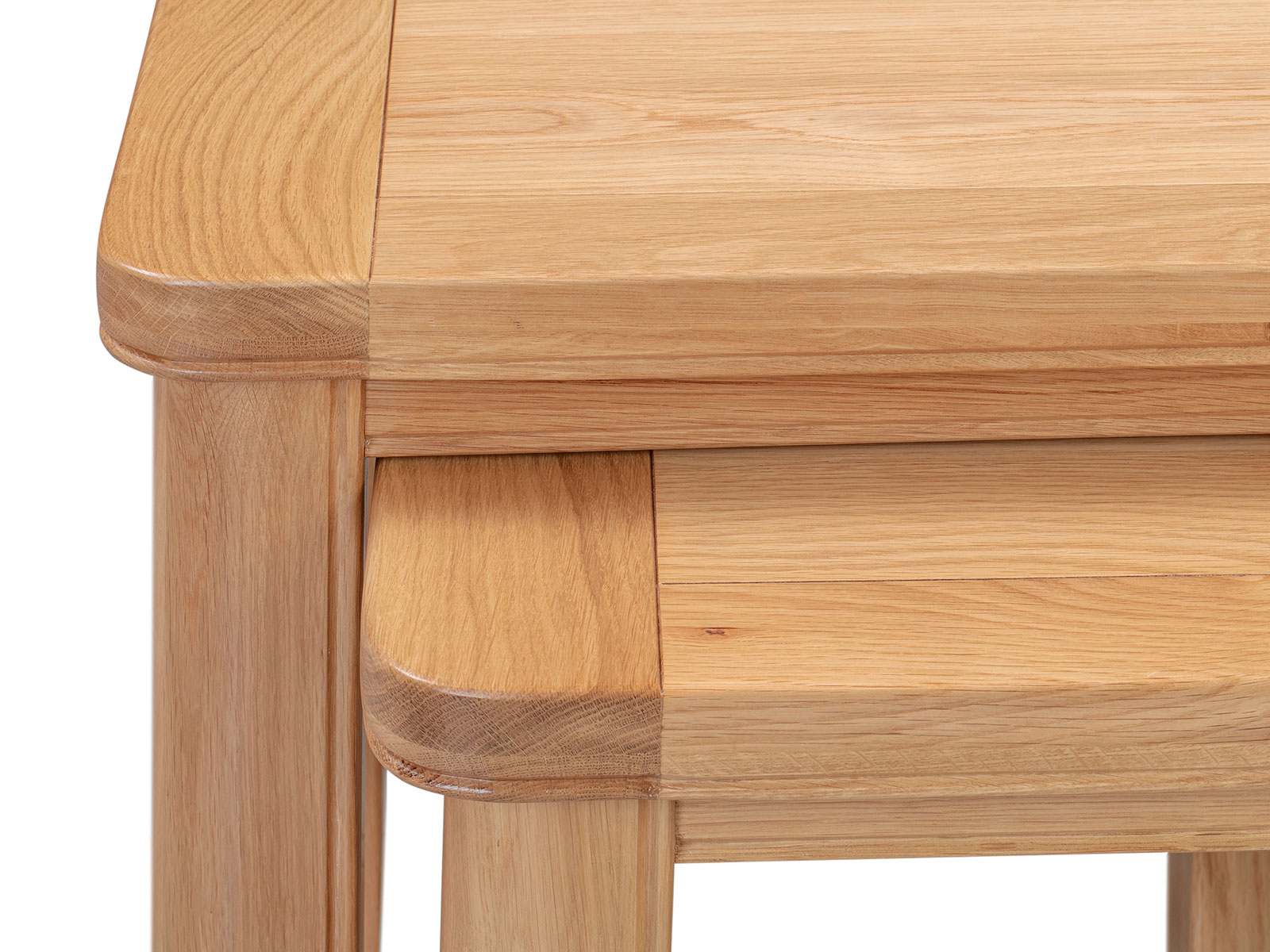 The Blenheim Oak Range of furniture is characterised by curved edges, classic moulding and a contemporary stainless steel handle. Blenheim Oak is finished in a natural colour with a clear lacquer.