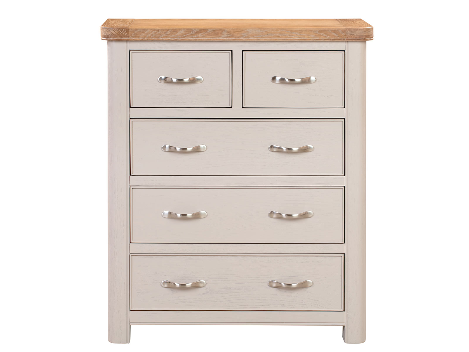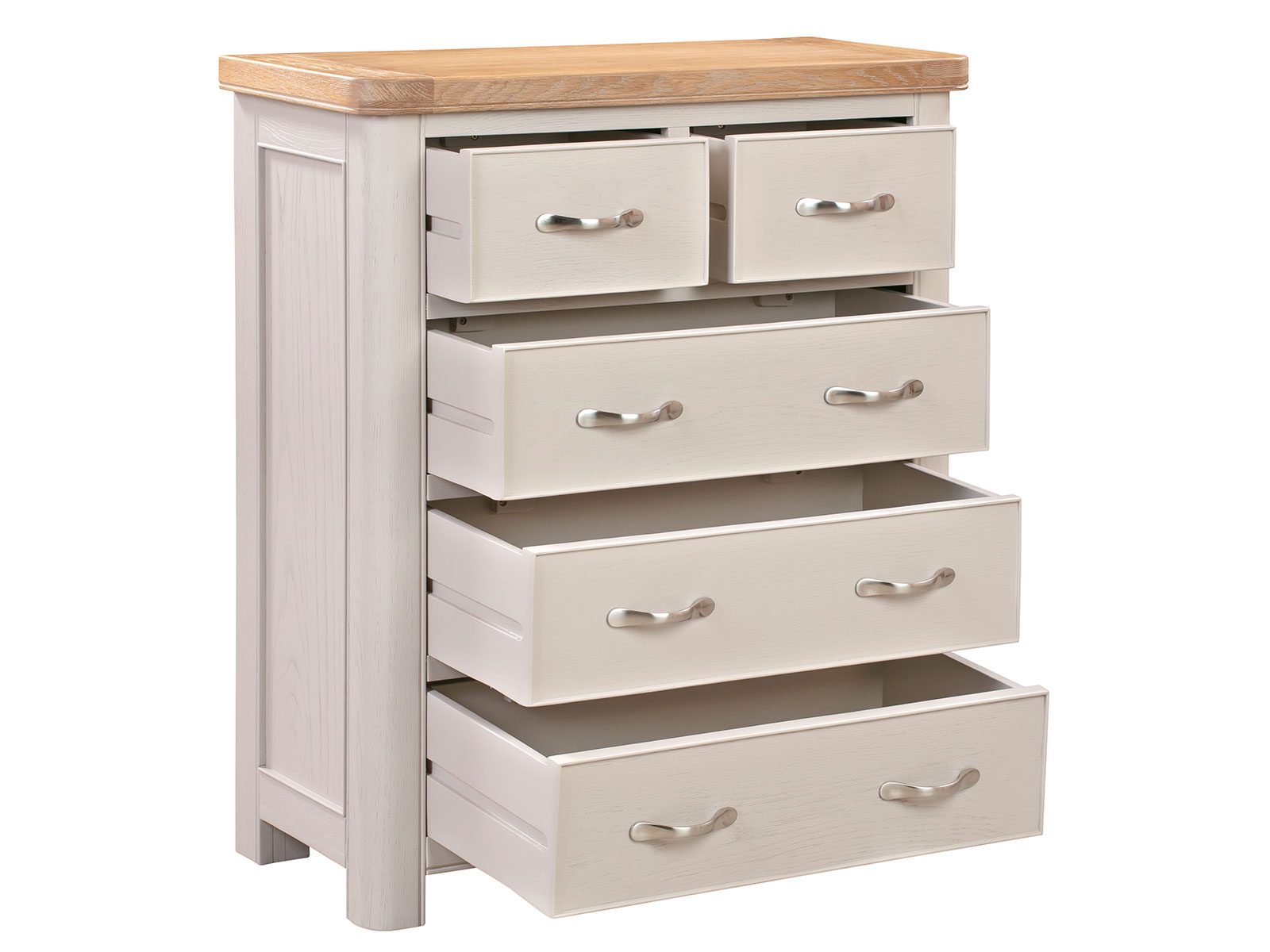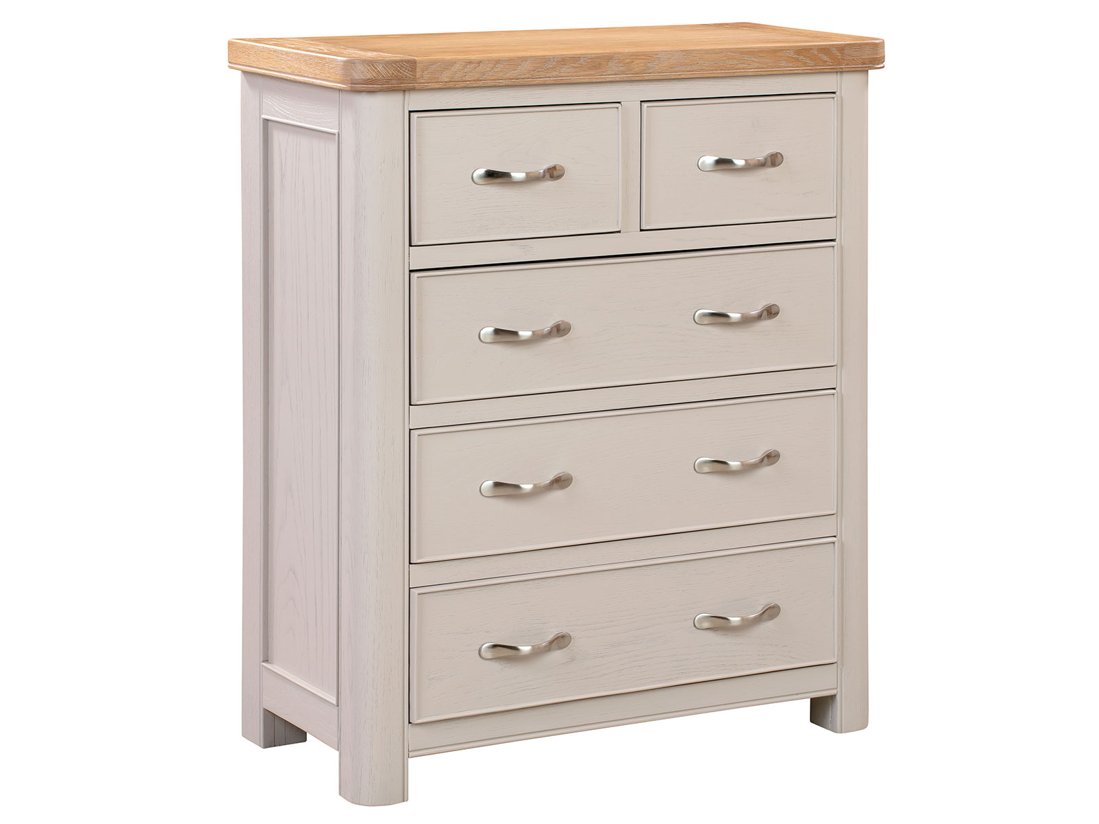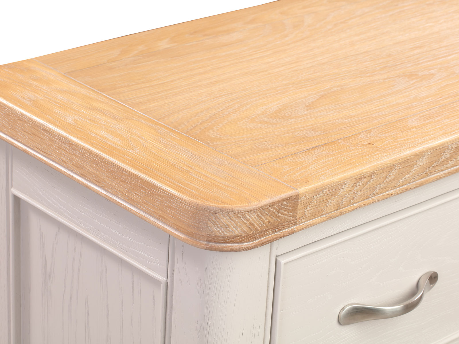 The Furniture Mill Blenheim Range of furniture is characterised by curved edges, classic moulding and a contemporary stainless steel handle. Blenheim Painted has washed oak tops with bases and legs finished in a putty grey, highlighting the natural oak grain underneath.