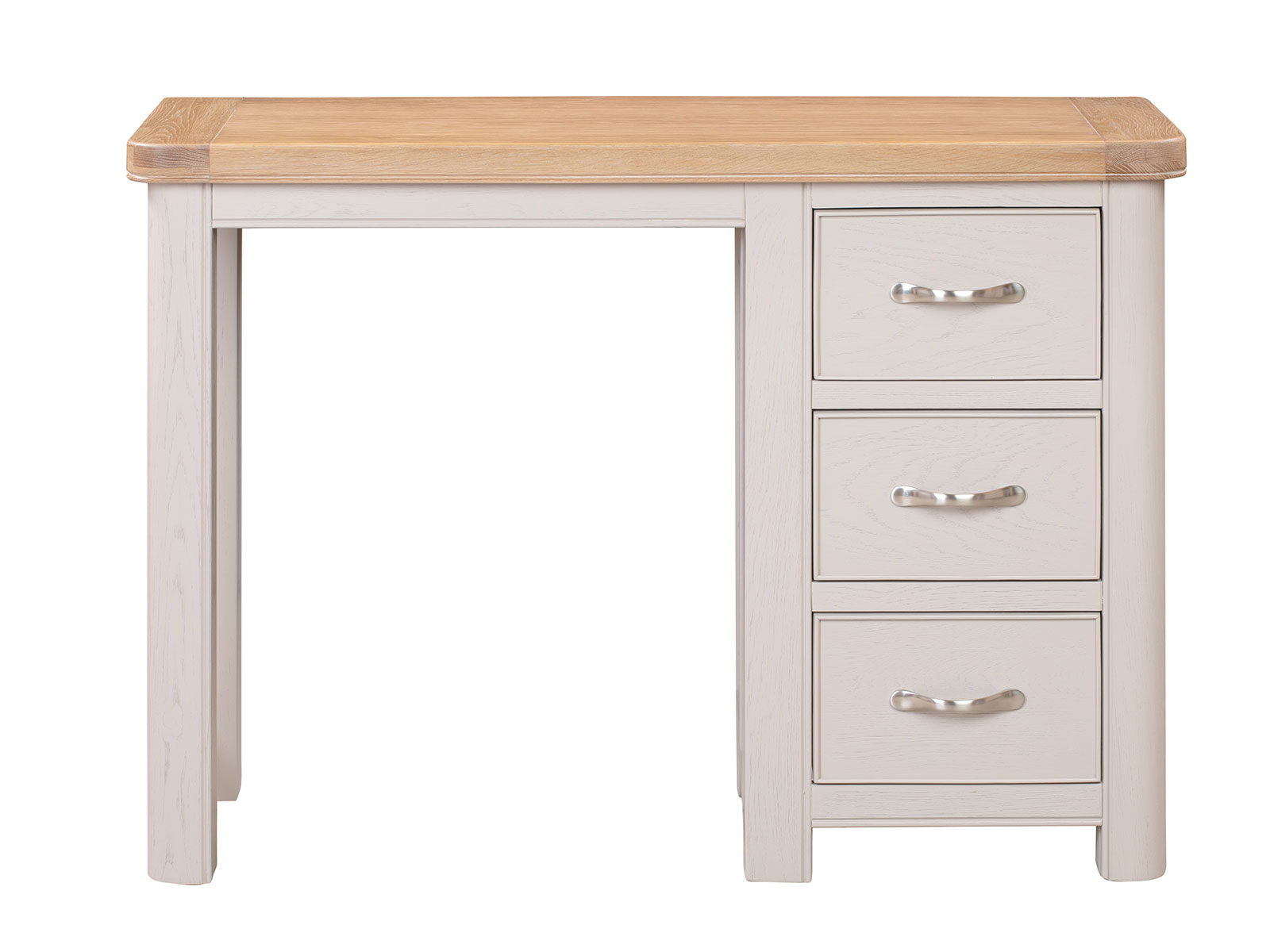 The Furniture Mill Blenheim Range of furniture is characterised by curved edges, classic moulding and a contemporary stainless steel handle. Blenheim Painted has washed oak tops with bases and legs finished in a putty grey, highlighting the natural oak grain underneath.
