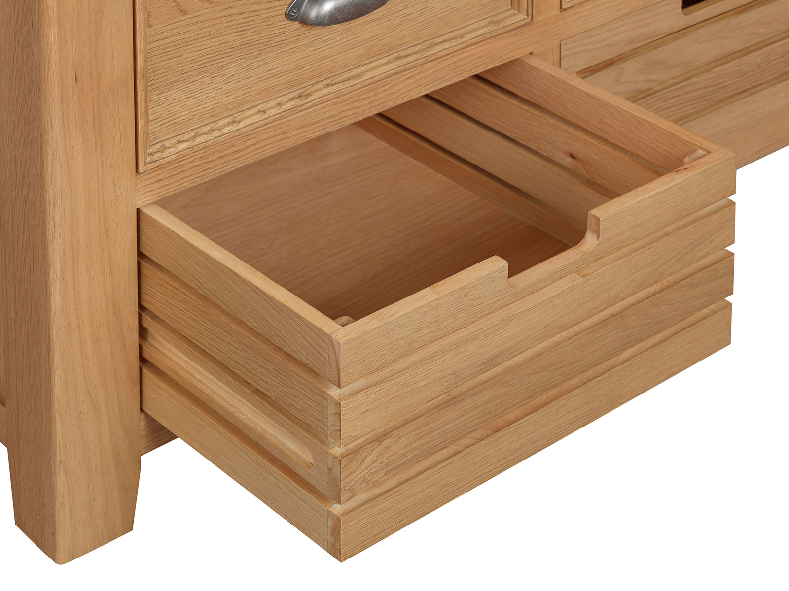 The Furniture Mill Evesham Oak range of living & dining furniture is manufactured with a warm, rustic oak finish. Smooth, rounded corners, panelling and a retro cup handle give the range a traditional appeal for the modern home.