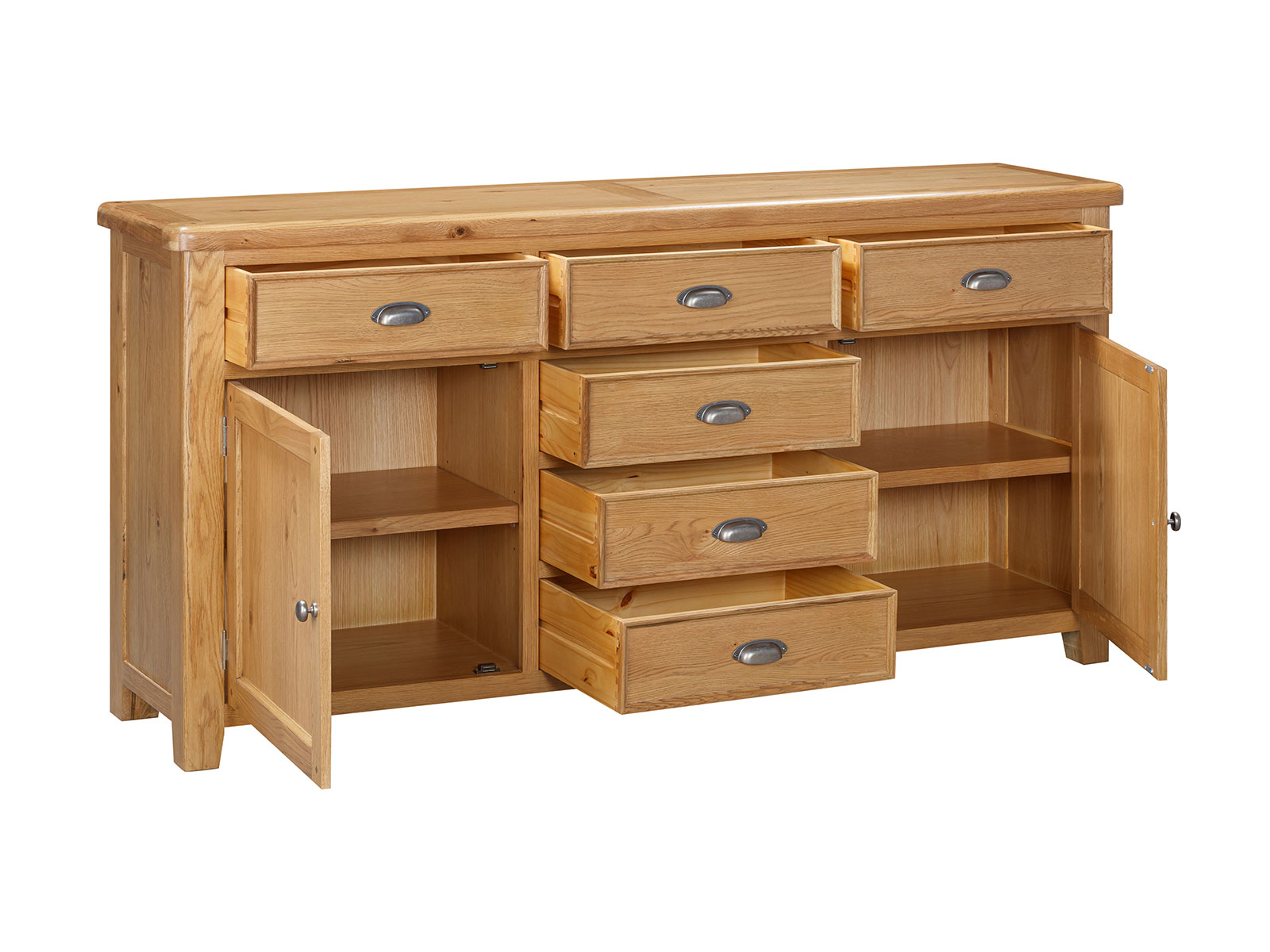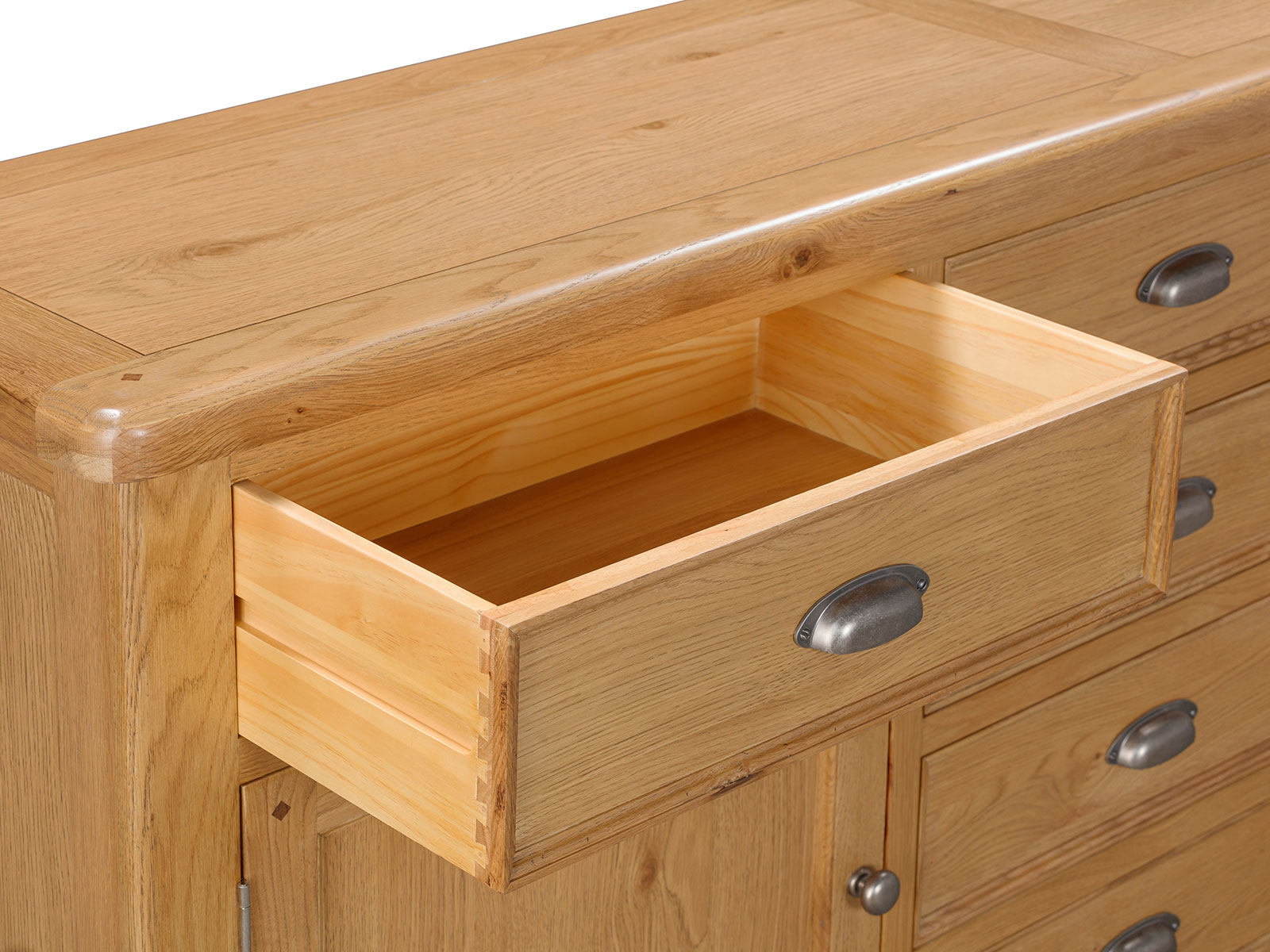 The Furniture Mill Evesham Oak range of living & dining furniture is manufactured with a warm, rustic oak finish. Smooth, rounded corners, panelling and a retro cup handle give the range a traditional appeal for the modern home.
