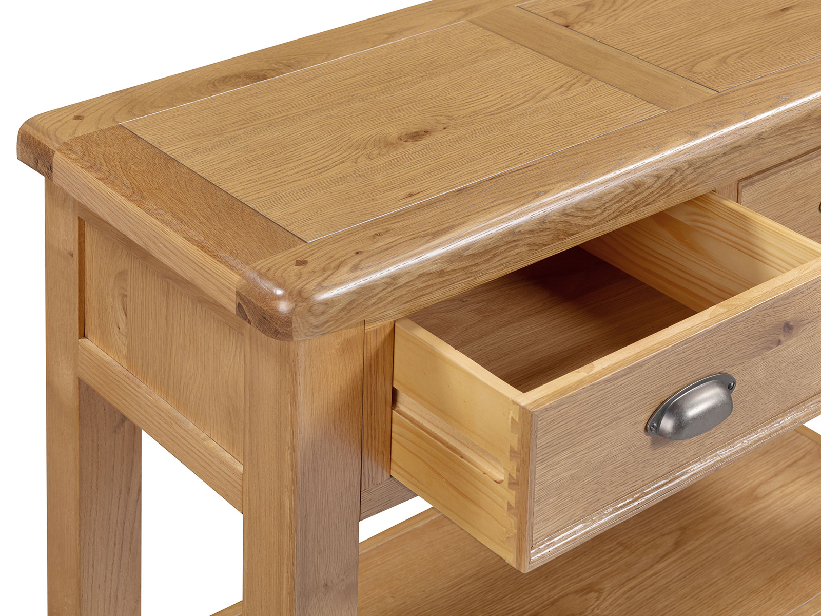 The Furniture Mill Evesham Oak range of living & dining furniture is manufactured with a warm, rustic oak finish. Smooth, rounded corners, panelling and a retro cup handle give the range a traditional appeal for the modern home.
