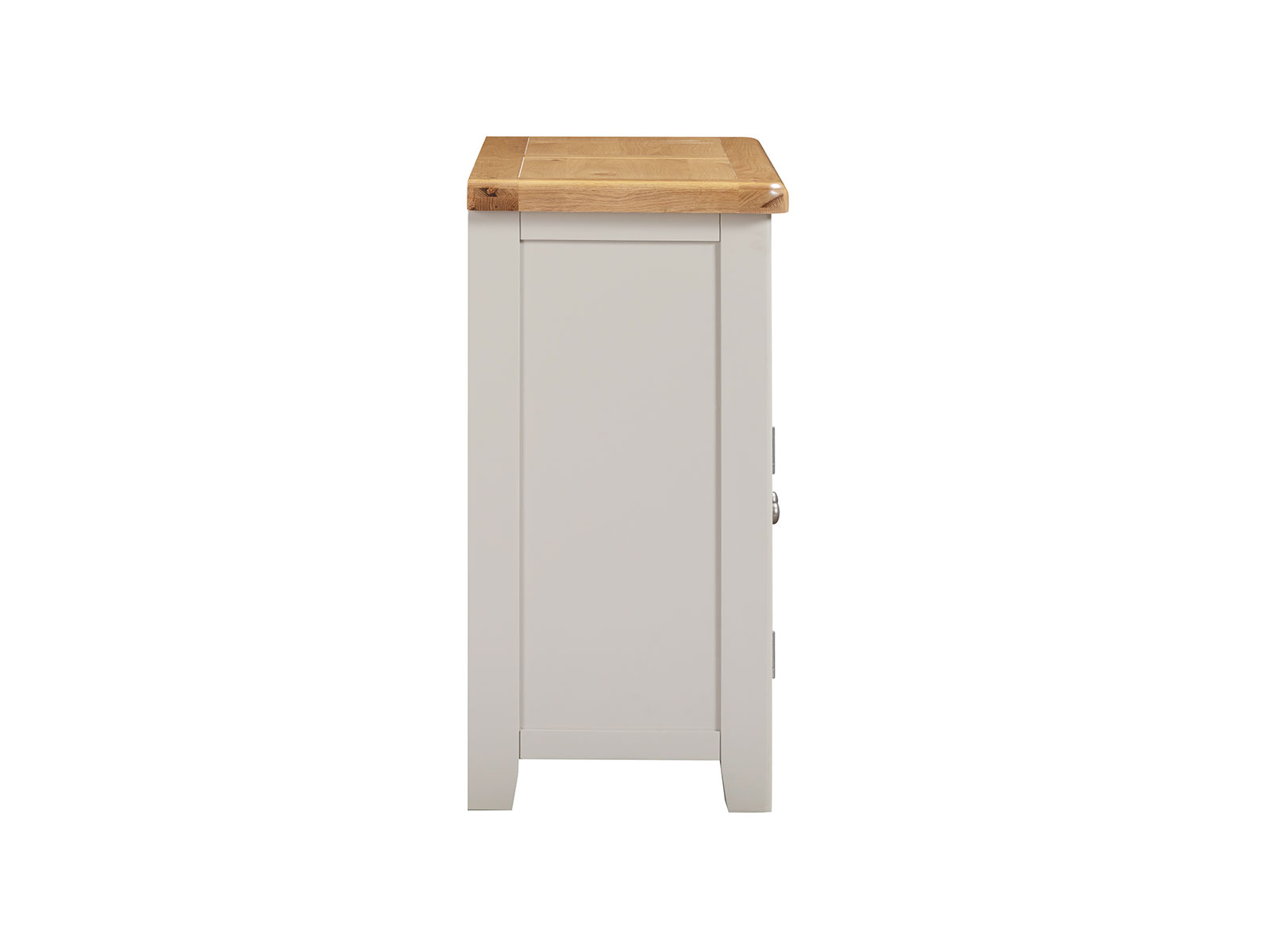 is manufactured with bases & legs in a light grey and finished with oak tops in a warm colour. Smooth, rounded corners, panelling and a retro cup handle give the range a traditional appeal for the modern home.