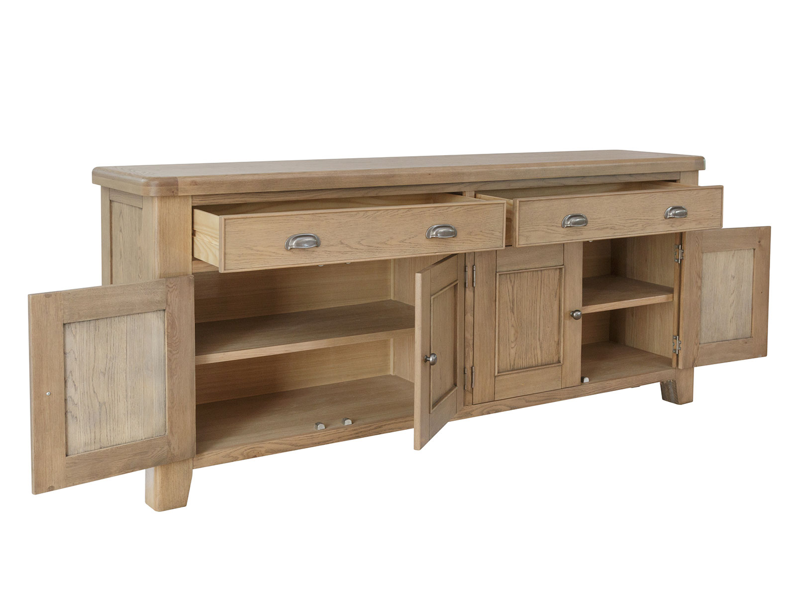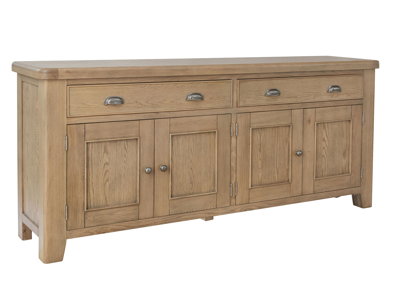 With a radiant warm oak finish, this collection brings a sumptuous and elegant traditional style that is set to complement any interior. Impressive quality runs through every detail, from the rounded corners and tapered legs to the thick oak tops and solid proportions.